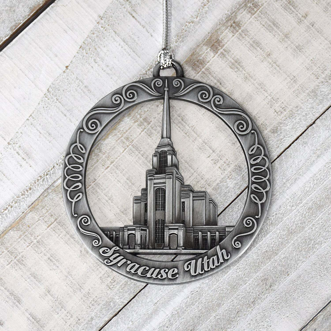 This keepsake ornament proudly displays the beautiful temple in an antique silver finish. The ornament is 3" inches in diameter...