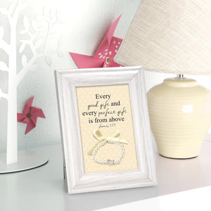 This baby blessing gift set includes one infant bracelet and one keepsake 4x6" frame. Bracelet can be removed from the...