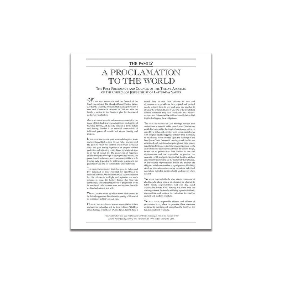 The Family A Proclamation to the World Printed on heavy weight card stock in 2 sizes. • 4x5" • 5x7"...