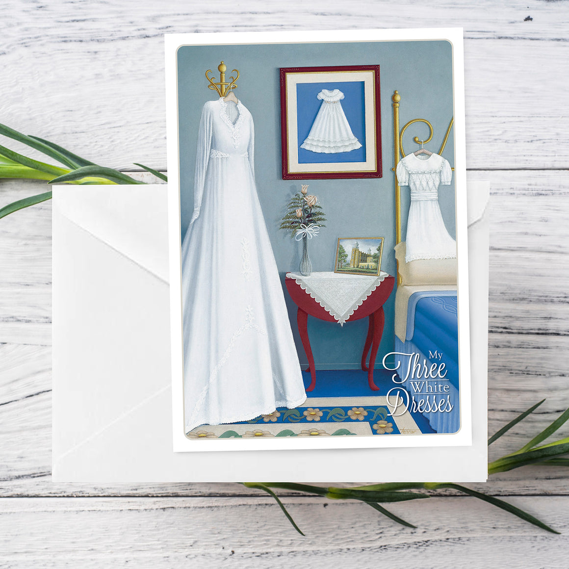 Our 2x6" bookmarks are printed on high-quality paper stock and are designed to perfection. Includes "My Three White Dresses" poem...
