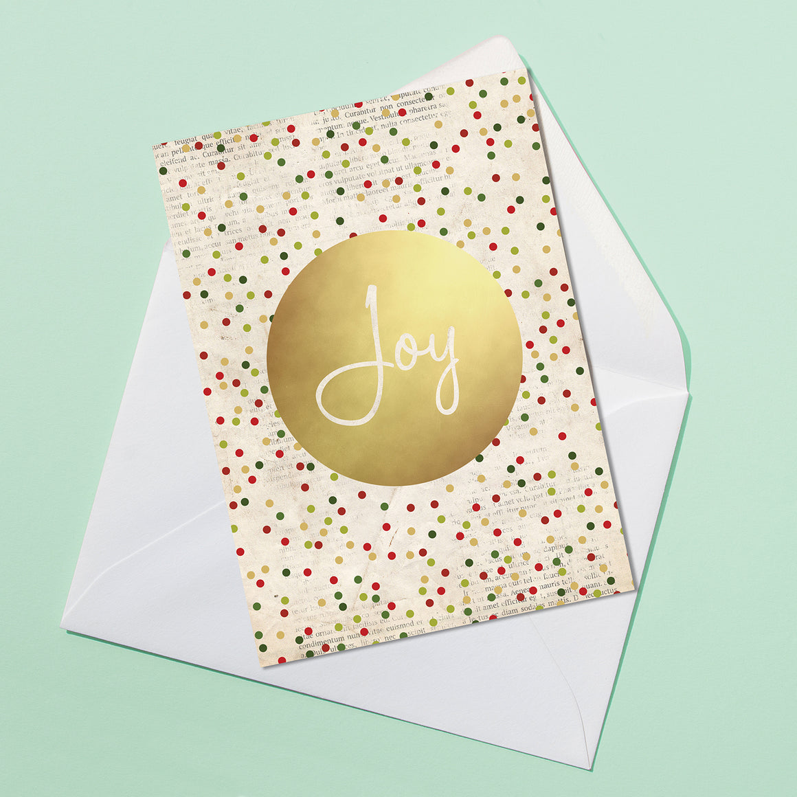 Our high-quality 5x7" greeting cards come with a white envelope. Inside message: Joy to the world, the Lord is come