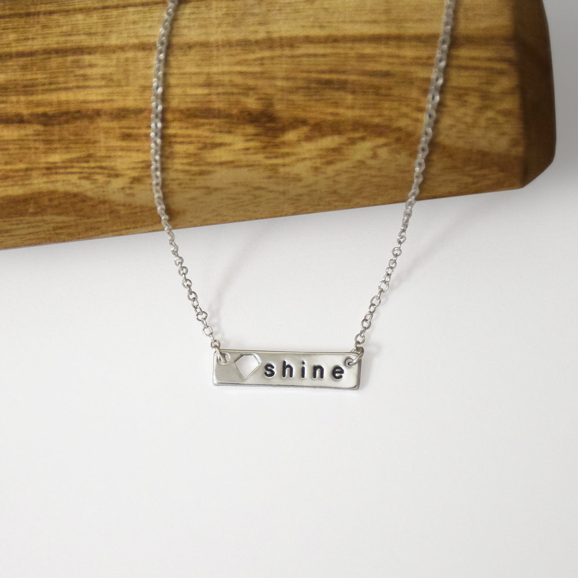 Shine Bar Necklace "Let your light so shine" Matthew 5:16 This dainty SHINE bar necklace comes with a cutout diamond...