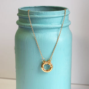 Encircled in His Love – Interlocking Hoops Necklace Simple yet full of meaning, this necklace features two dainty open hoops...