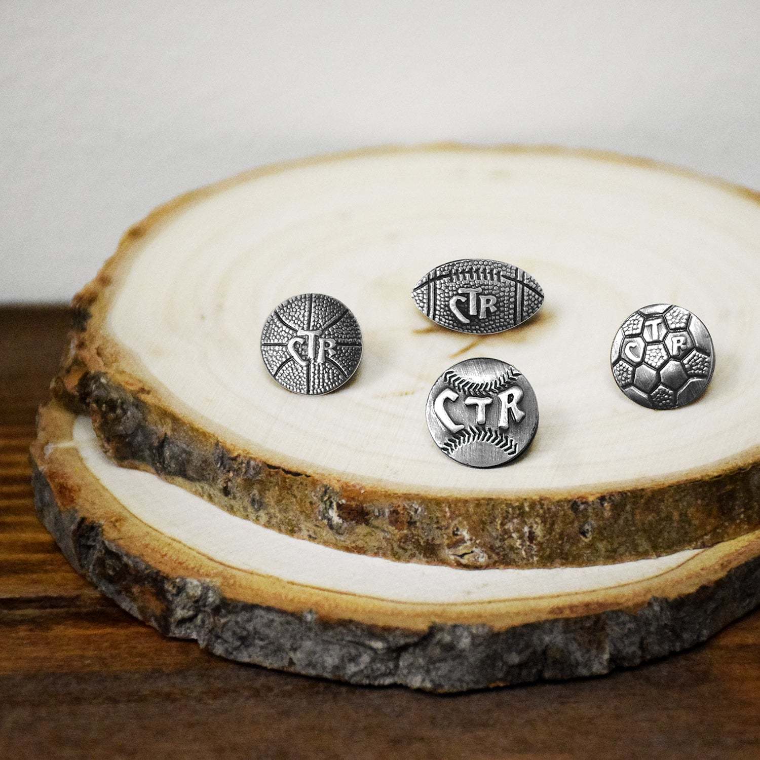 This classic CTR black and silver pin is approximately 1/2" and comes complete with a butterfly clip.