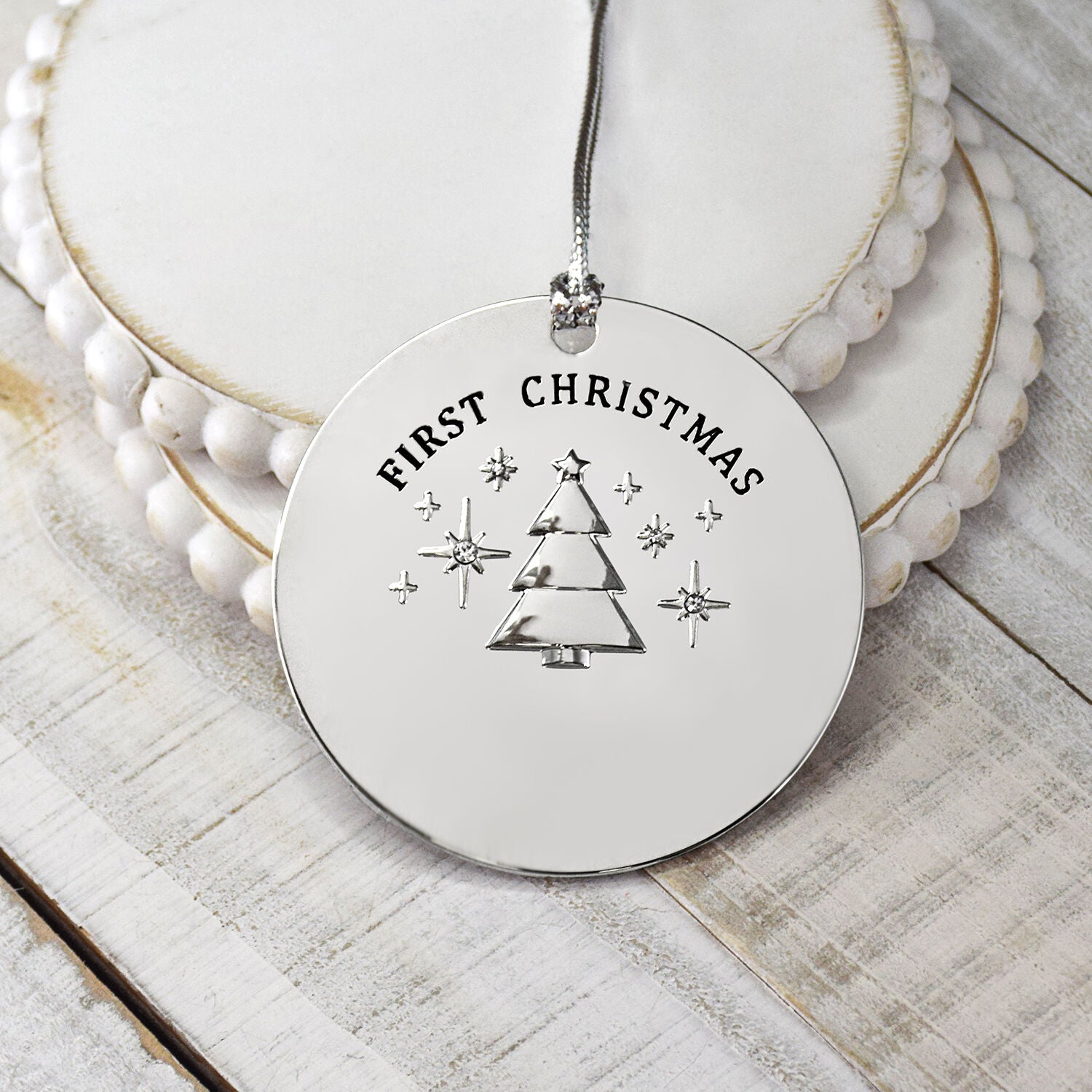 Make your holiday season truly special with these fully customizable Christmas ornaments from Lifebeats. Crafted with a brilliant shiny silver finish and measuring 2.5", these elegant keepsakes add a personal touch to your tree while celebrating life's biggest milestones. Whether you're commemorating a new home, a wedding, a baby, or a beloved pet, each ornament can be engraved with your custom message, names, or dates to create a meaningful memento. Choose from unique designs like a house, a "just married" car, or a "first Christmas" theme—and let us handle the engraving with care and speed. Ships in just 4 business days!