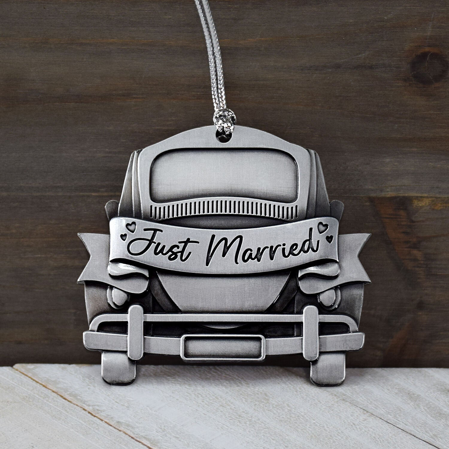 Make your holiday season truly special with these fully customizable Christmas ornaments from Lifebeats. Crafted with a brilliant shiny silver finish and measuring 2.5", these elegant keepsakes add a personal touch to your tree while celebrating life's biggest milestones. Whether you're commemorating a new home, a wedding, a baby, or a beloved pet, each ornament can be engraved with your custom message, names, or dates to create a meaningful memento. Choose from unique designs like a house, a "just married" car, or a "first Christmas" theme—and let us handle the engraving with care and speed. Ships in just 4 business days!