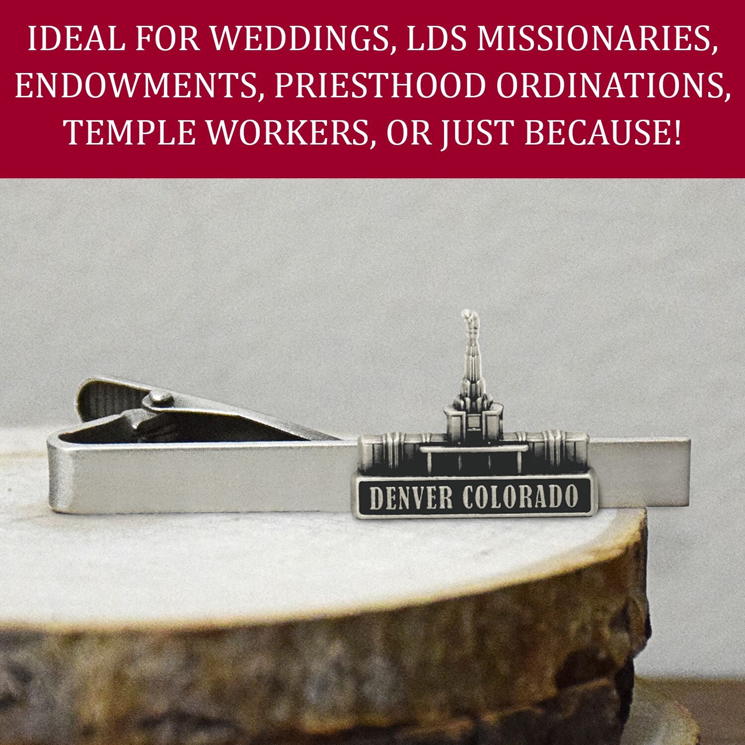Introducing our exquisitely crafted 2.5" tie clip, a sophisticated accessory designed to elevate your ensemble with a touch of refined charm. This meticulously designed tie clip features a detailed temple charm made from zinc alloy. Crafted with precision and durability in mind, our tie clip ensures a secure grip on your tie, preventing any unwelcome slips or shifts throughout the day.  Available in both antique gold and antique silver finishes, our tie clip offers versatility to suit any occasion or personal preference. Whether you're attending a formal event or a casual gathering, this timeless accessory effortlessly complements any outfit, adding a dash of sophistication to your look. Makes a great gift for weddings, groomsman, missionaries, temple workers, birthdays, Christmas, or just because. Ask about our ward discount for 5 or more items