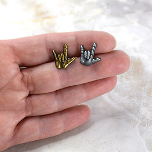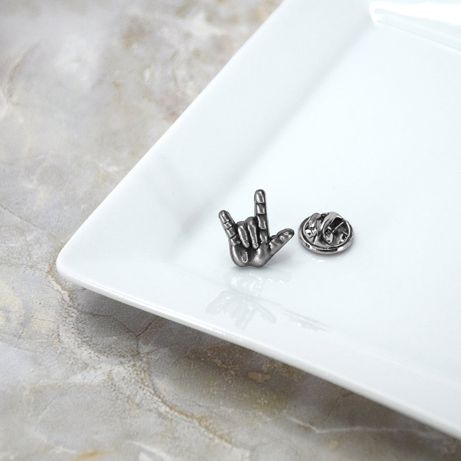 Express your love through American Sign Language. Available in two finishes, antique silver, and antique gold. These pins are approximately...