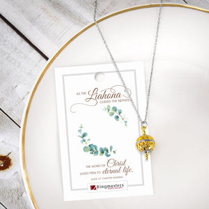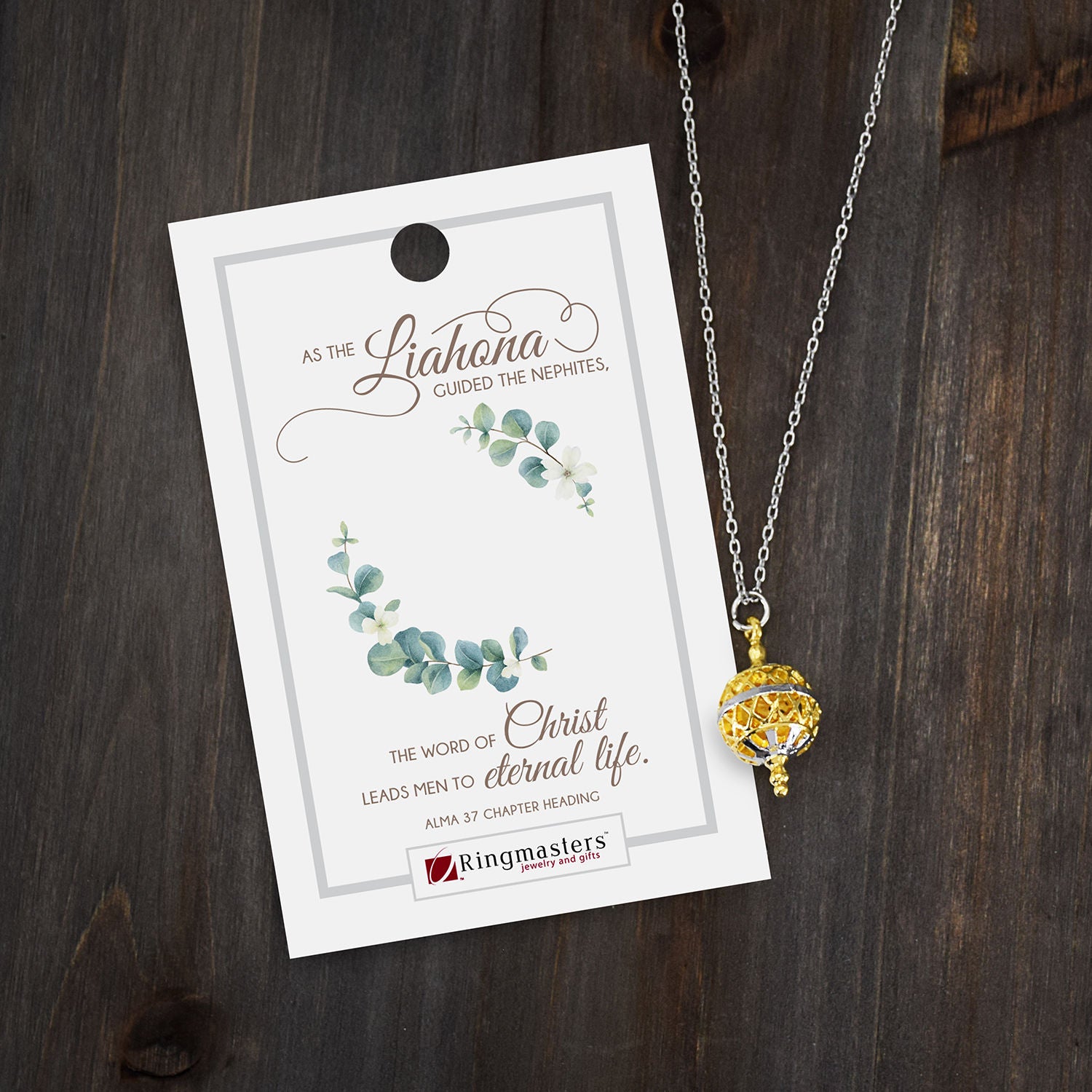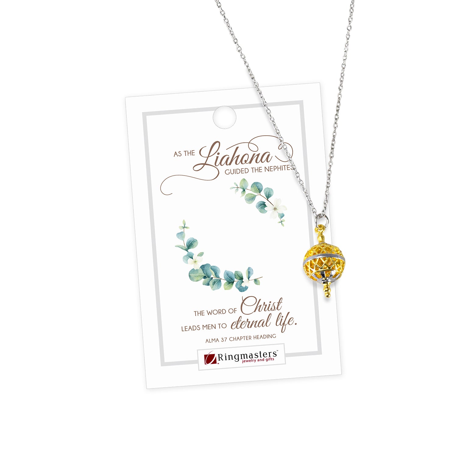 This stunning 3-dimensional, two-tone Liahona necklace is the perfect reminder to follow the words of Christ. The Liahona charm is approximately 1" and comes complete on an 18-20" adjustable chain.
