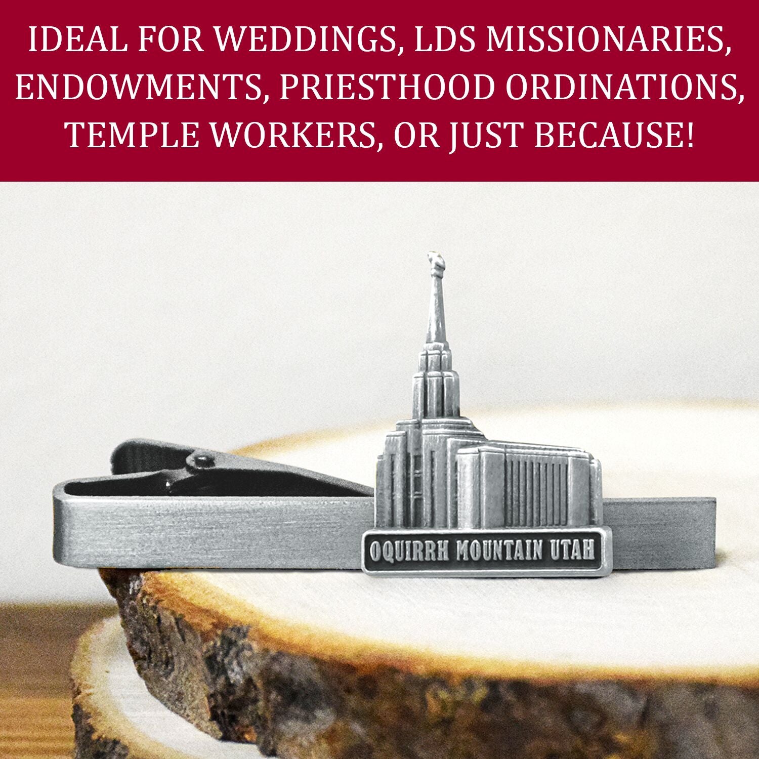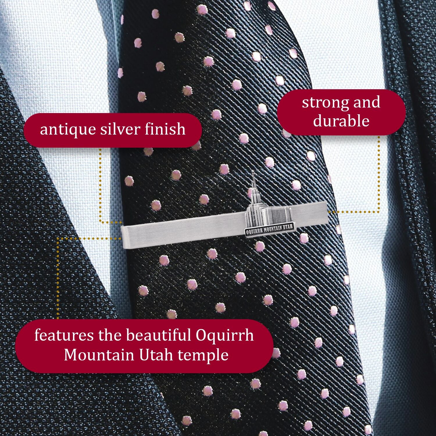 Introducing our exquisitely crafted 2.5" tie clip, a sophisticated accessory designed to elevate your ensemble with a touch of refined charm. This meticulously designed tie clip features a detailed temple charm made from zinc alloy. Crafted with precision and durability in mind, our tie clip ensures a secure grip on your tie, preventing any unwelcome slips or shifts throughout the day.  Available in both antique gold and antique silver finishes, our tie clip offers versatility to suit any occasion or personal preference. Whether you're attending a formal event or a casual gathering, this timeless accessory effortlessly complements any outfit, adding a dash of sophistication to your look. Makes a great gift for weddings, groomsman, missionaries, temple workers, birthdays, Christmas, or just because. Ask about our ward discount for 5 or more items