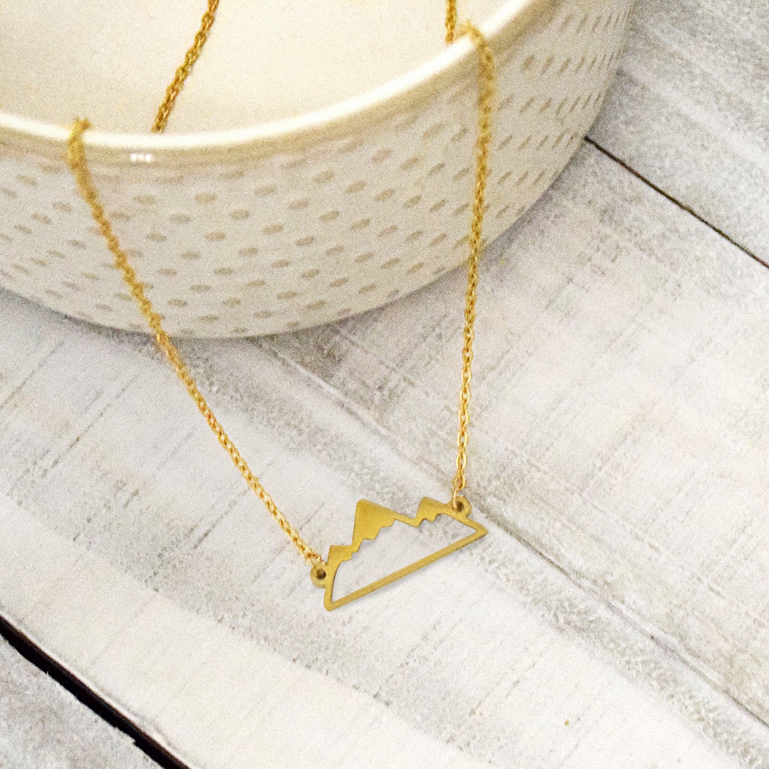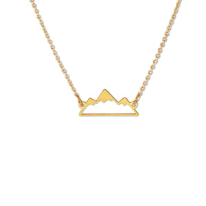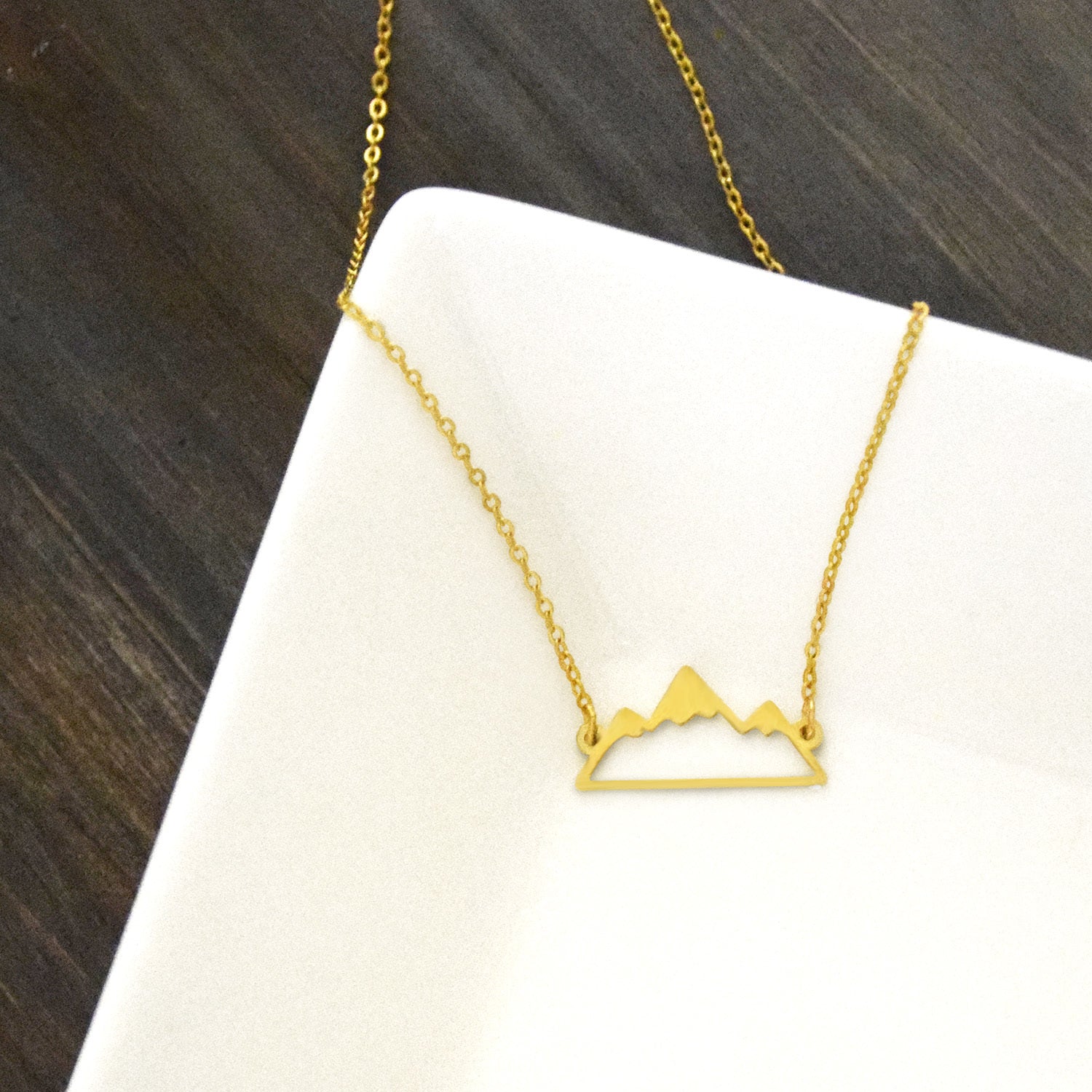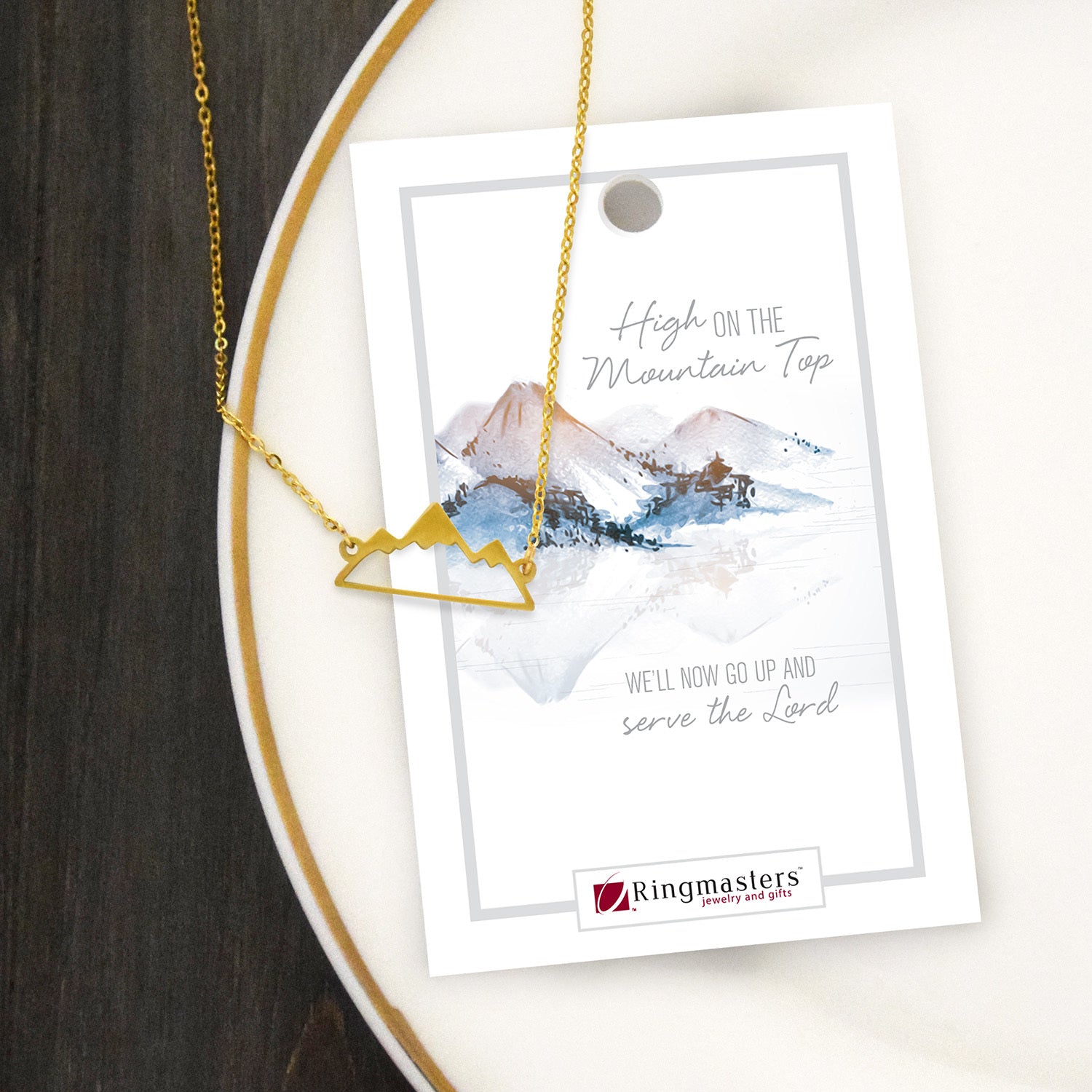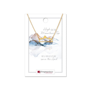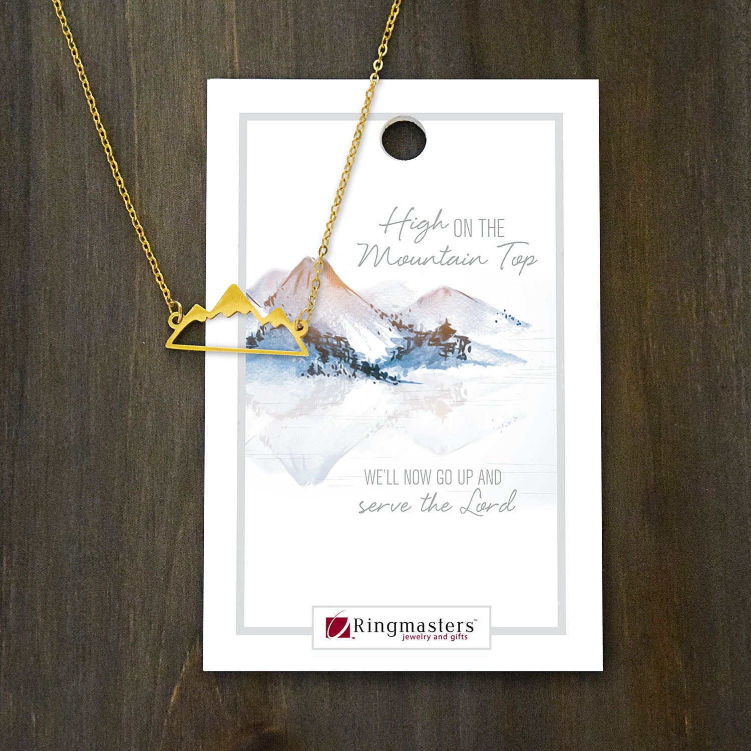 This stunning gold mountain necklace is approx. 1" and comes on a 16-18" curb link chain.