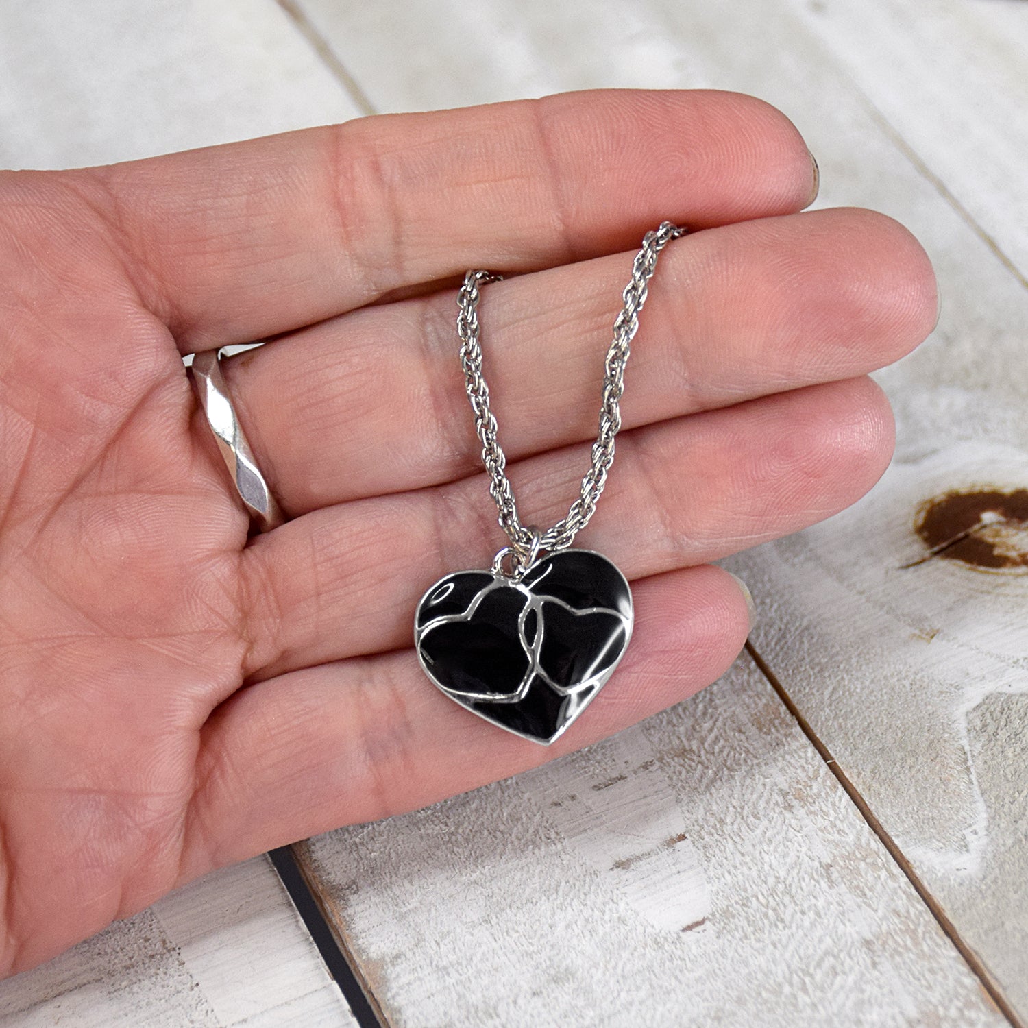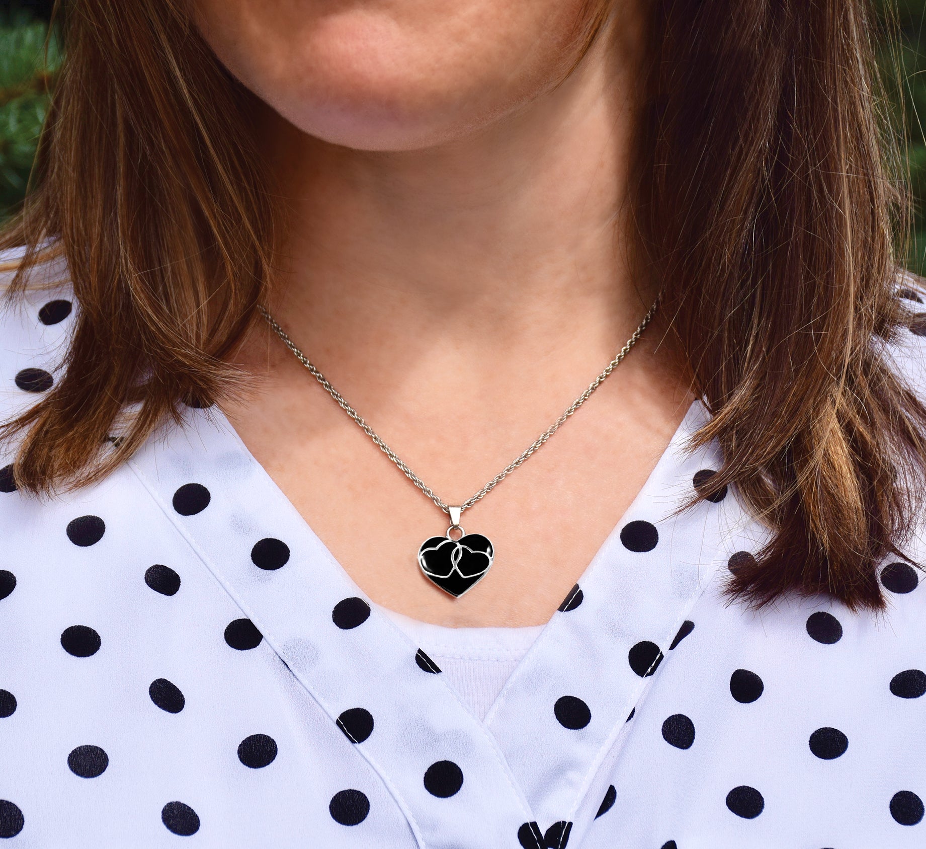 The Heart charm size is approximately 1" and comes on a 18-20" adjustable rope chain.