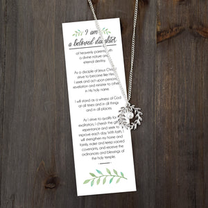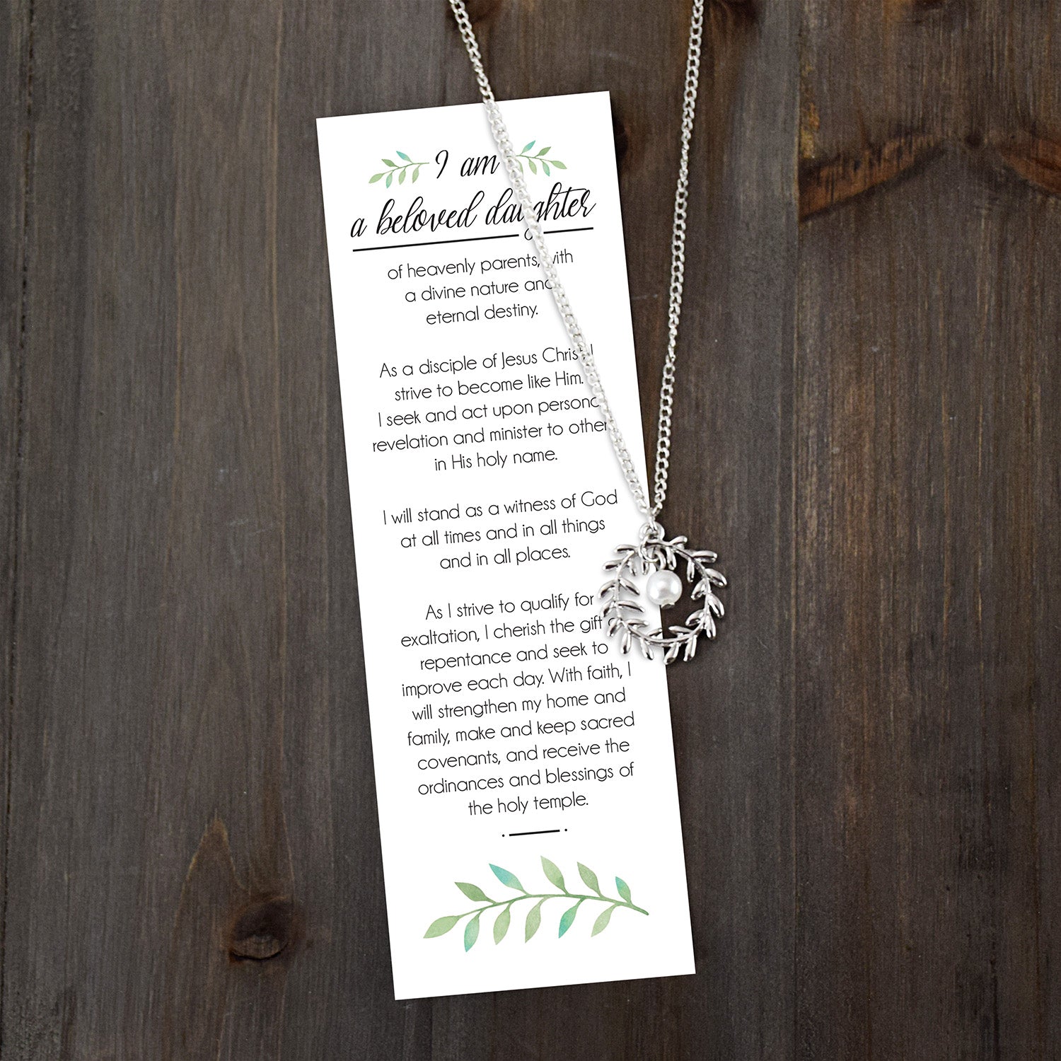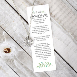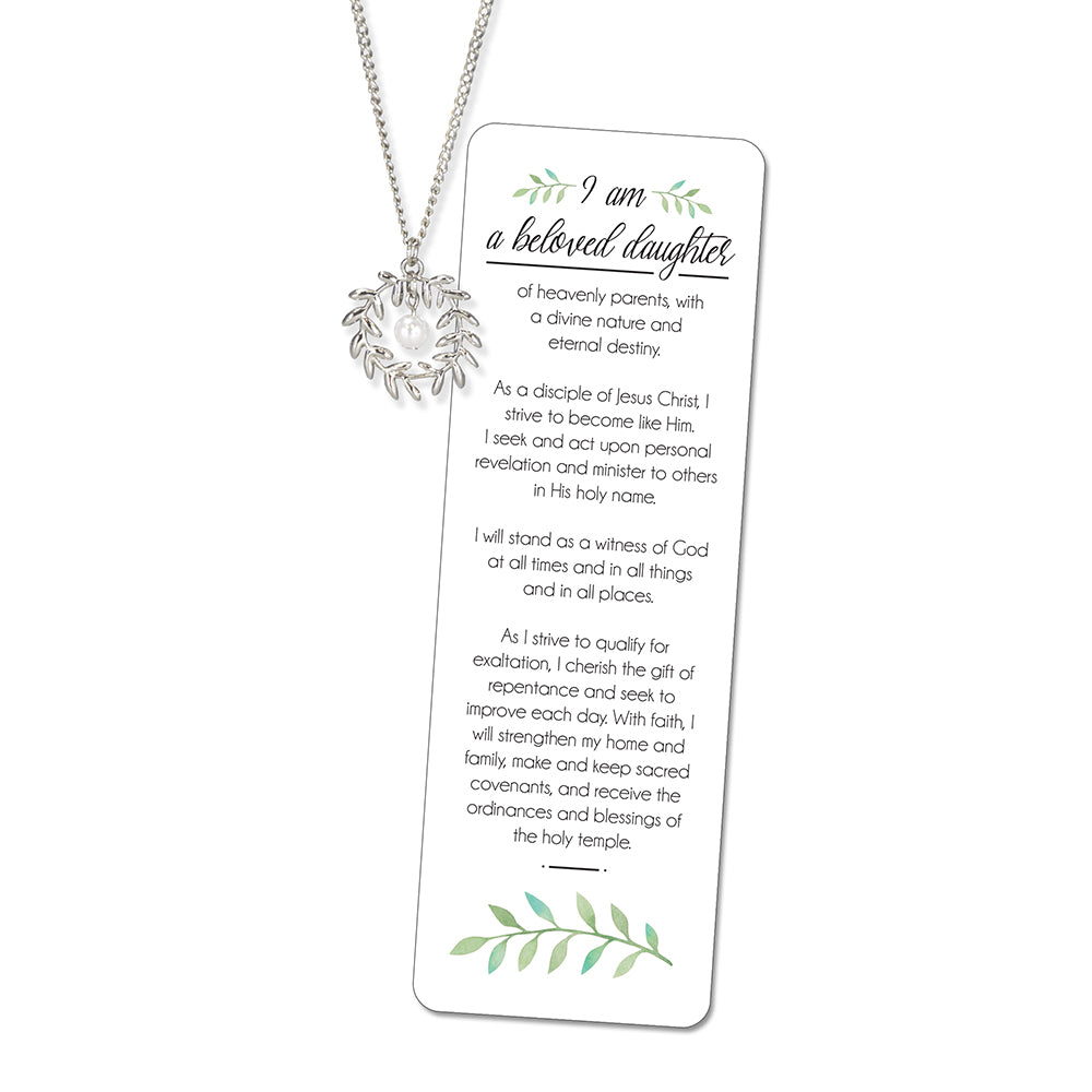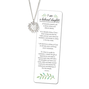 This Necklace & Bookmark Set is a lasting reminder of faith and divine identity, created to inspire and uplift Young Women as they live their values and follow Christ.