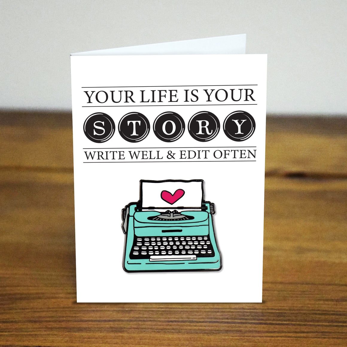 ✍️ Typewriter Enamel Pin – “Your Life Is Your Story” Your life is your story — write well and edit...