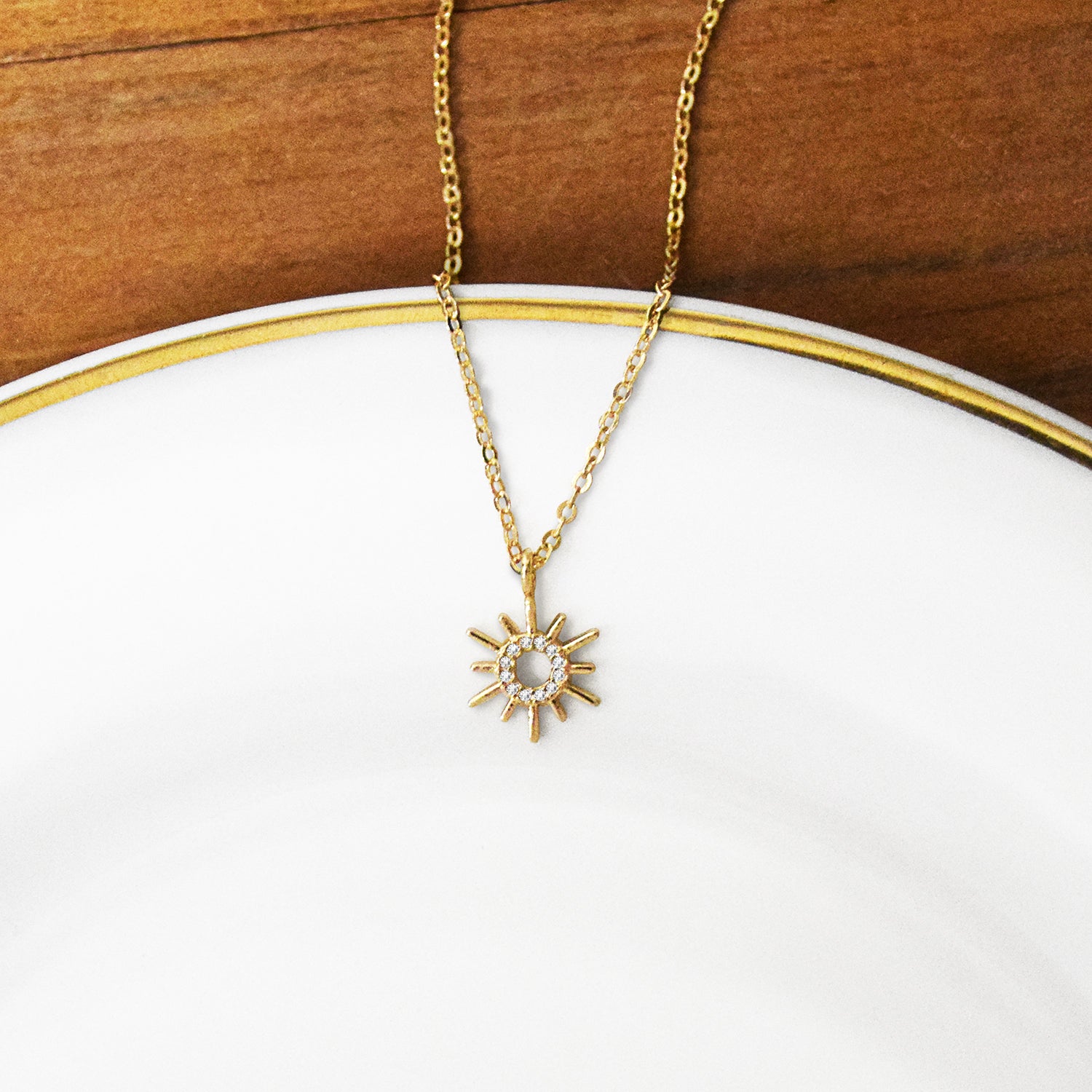 Brighten your days with this simple but beautiful Sun charmed Sunlight Necklace. The pendant is aprox. 3/4". Gold necklace can adjust to 18-20” on a link chain. Comes with a lifetime warranty.