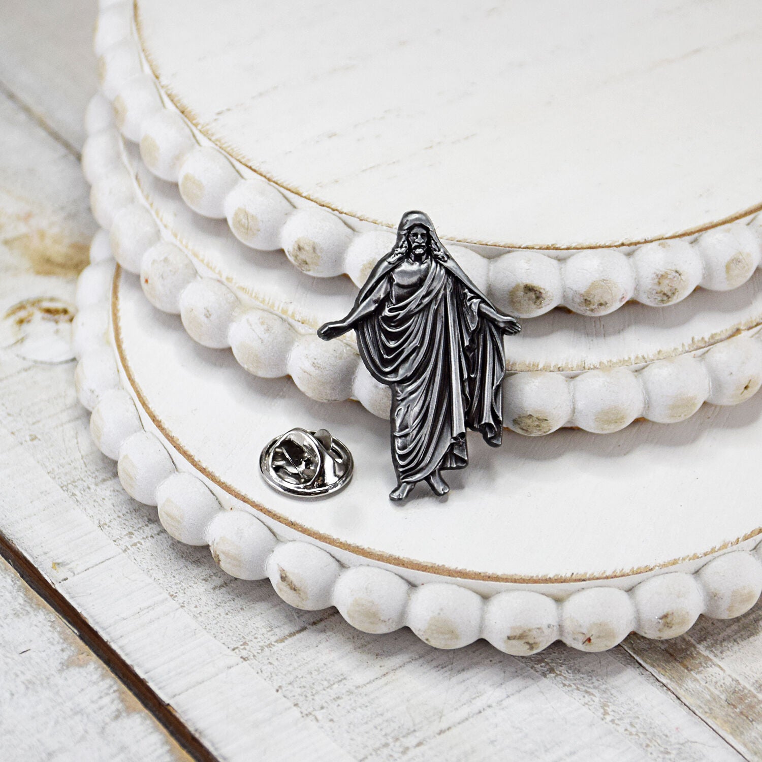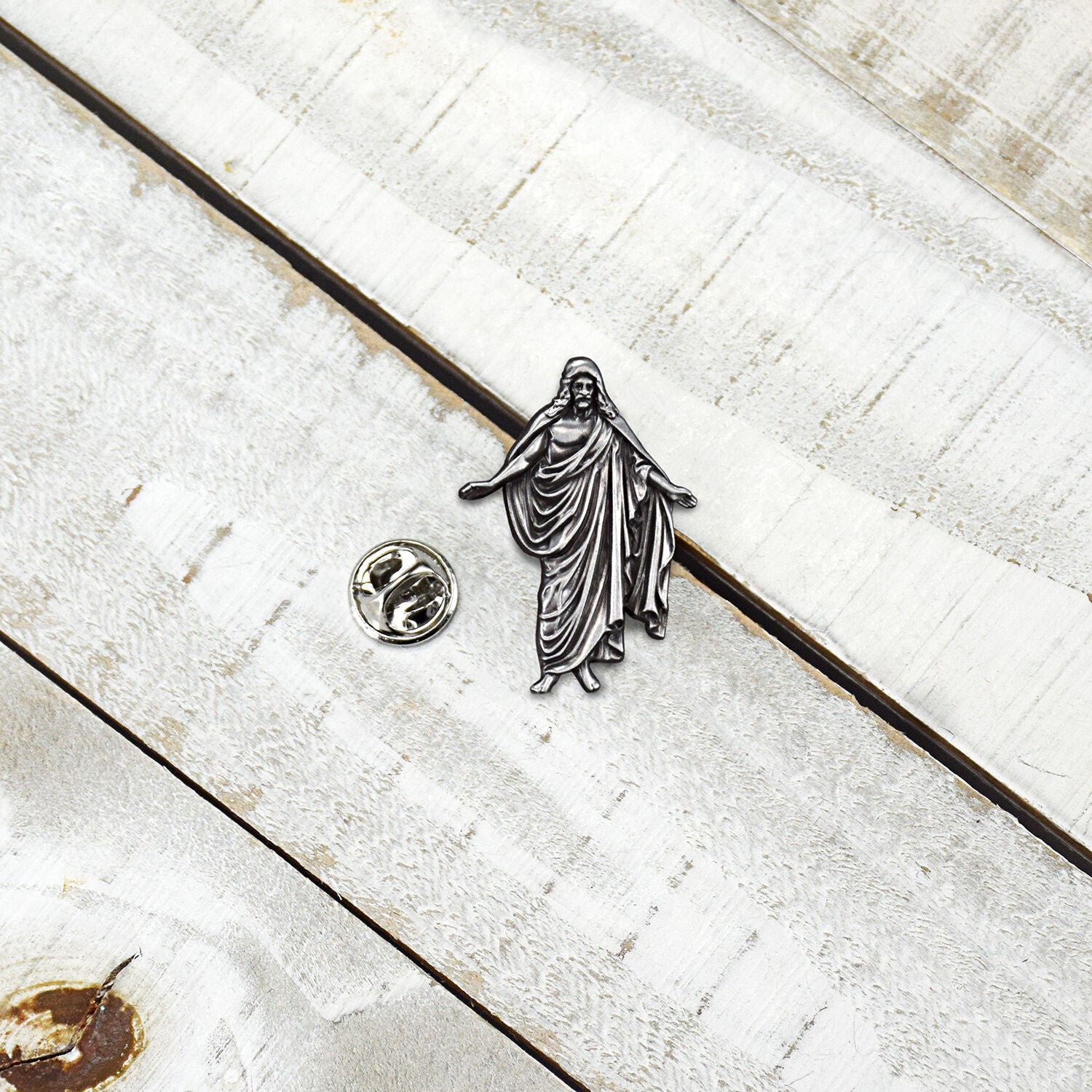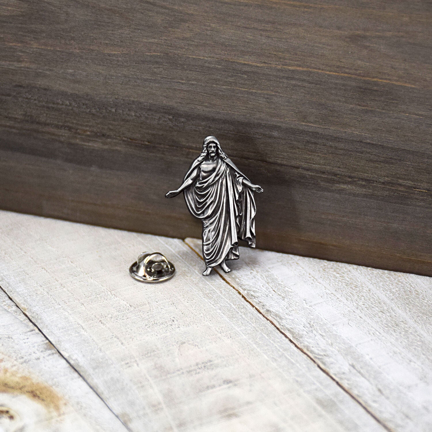 This 1.25" Christus Statue Pin is a beautiful reminder of faith, featuring an intricate design that captures the majesty of the Savior. Crafted from durable zinc alloy and cast using a detailed process, this pin ensures that the fine details of the Christus statue are faithfully represented. Available in two elegant finishes—Antique Silver and Antique Bronze—it adds a touch of reverence to any outfit or accessory. Whether pinned to a backpack, scripture tote, suit lapel, or displayed in other creative ways, this pin serves as a meaningful and stylish symbol of your beliefs. A perfect gift for loved ones or a personal keepsake, it serves as a constant reminder of the Savior’s love and grace.
