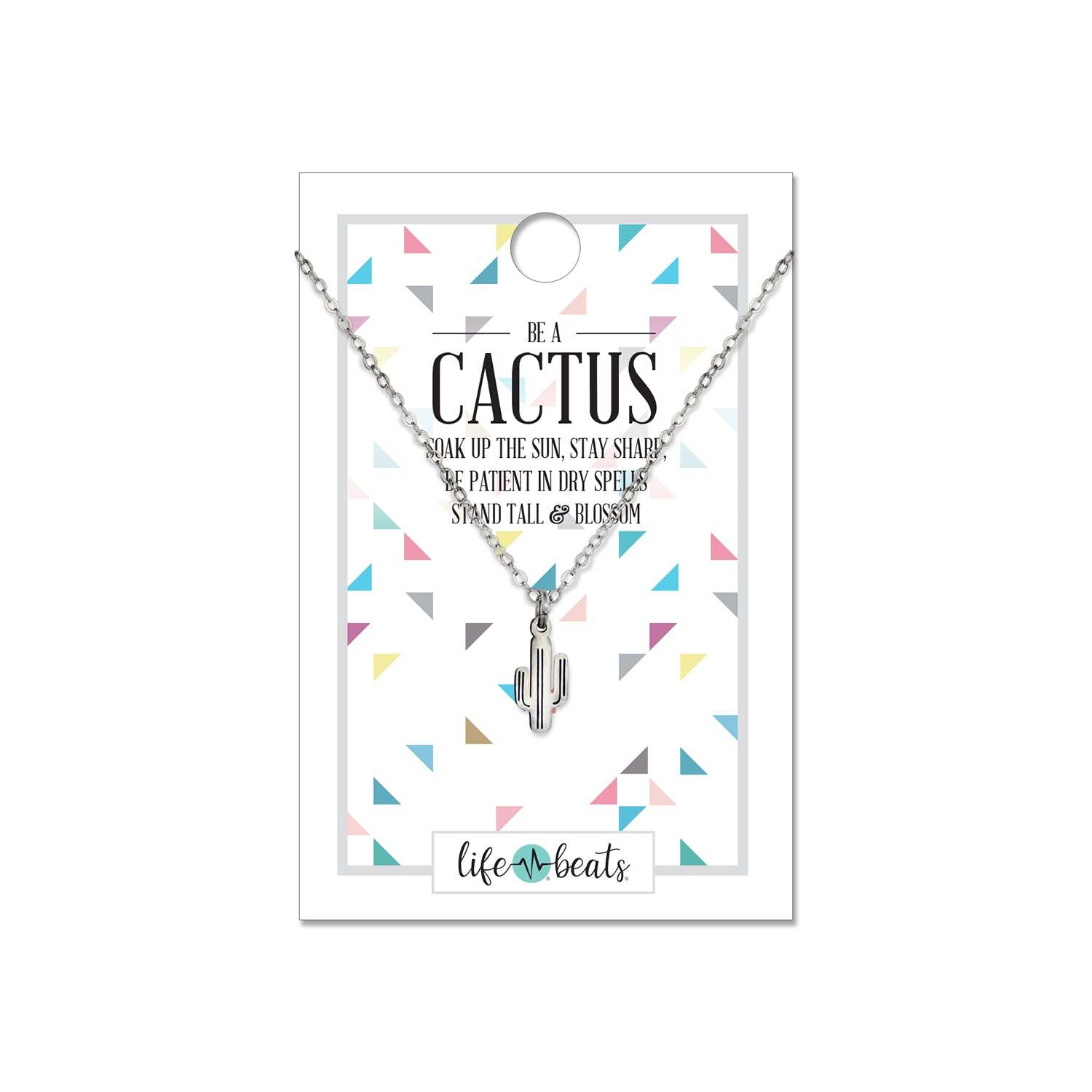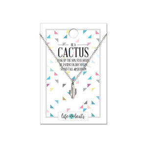 Be a cactus. Soak up the sun, stay sharp, be patient in dry spells, stand tall, and blossom. This necklace features a cactus charm on a 16-18" chain necklace. Wear it to remind yourself that today is a good day to be optimistic. Choose between gold and silver.