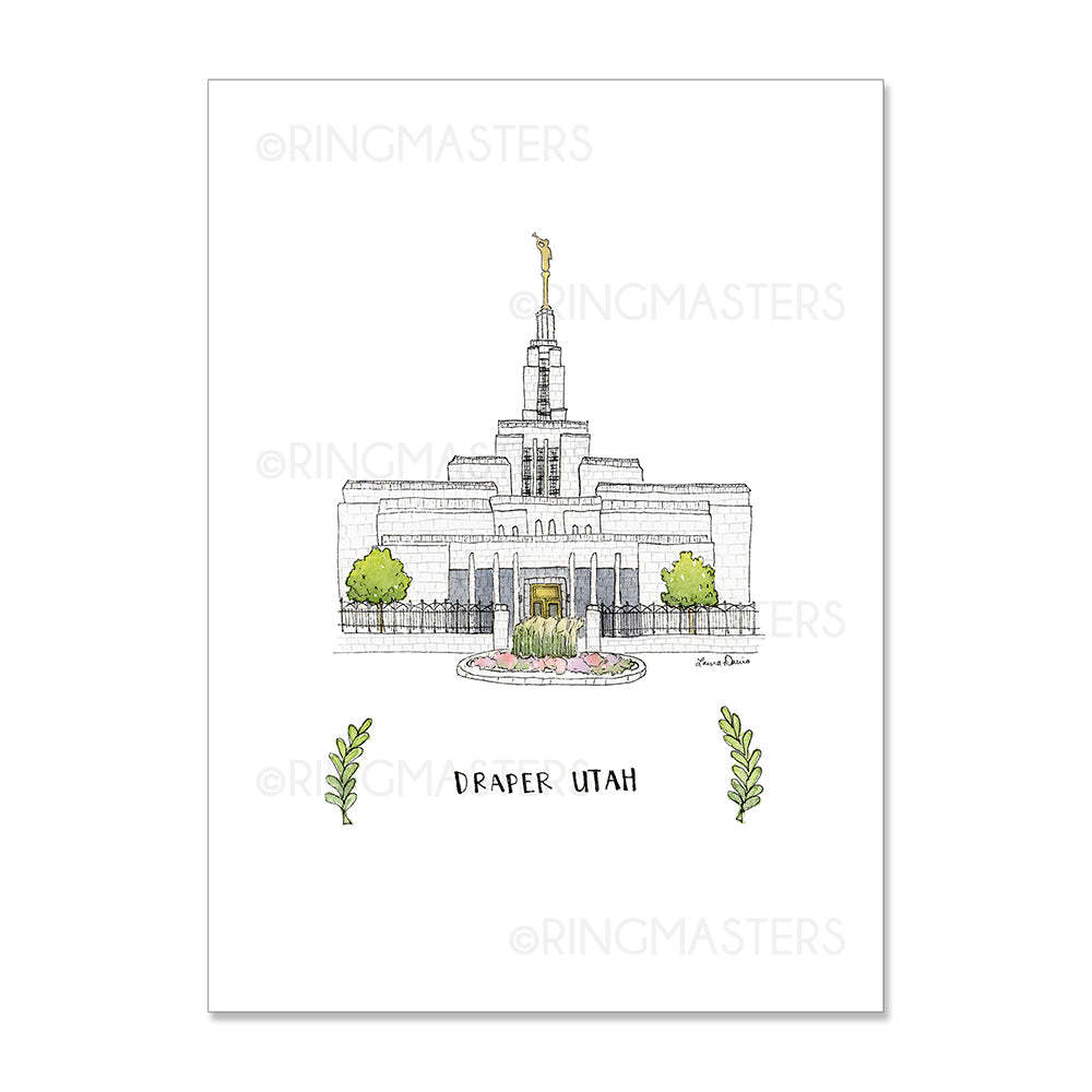 Gift this beautiful Bountiful Temple 5x7" Each print is printed on a quality cardstock and makes a great gift for all from loved ones to your primary class! From Ringmasters. The world leader in gifts for members of the Church of Jesus Christ of Latter-day Saints