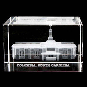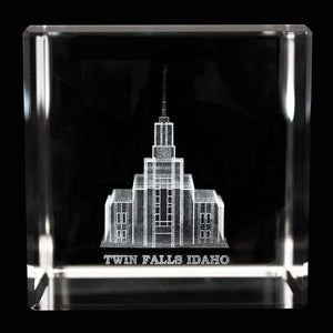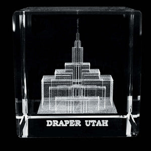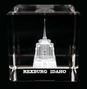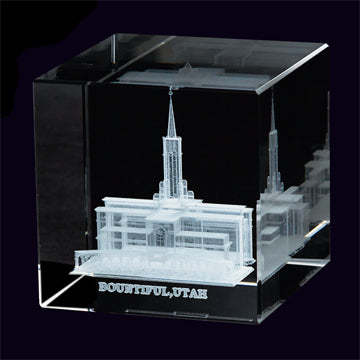 This beautiful laser engraved crystal cube makes for a perfect wedding or anniversary gifts. Together with a lighted rotating base, these 3D pieces of art make for a great decoration on a table or shelf. Each cube is packaged in a beautiful velvet-lined gift box. Over 30 temples are available for members across the United States and Canada. This cube is: 5cm x 5cm x 8cm.