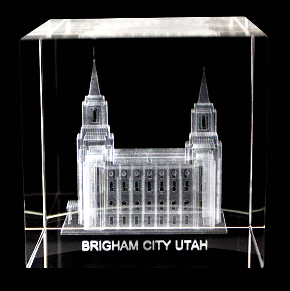 Brigham City Utah Temple Laser Engraved Crystal Cube