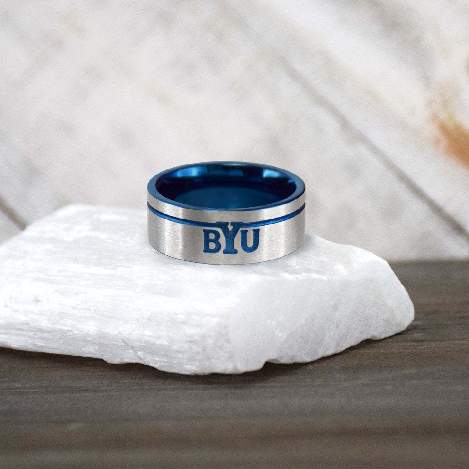 Show your school spirit with this officially licensed BYU Ring! The BYU ring is made of durable, light weight, scratch resistant, hopoallergenic, tarnish resistant and affordable stainless steel! The trendy design is perfect for any BYU fan. Comes with Fan Frenzy lifetime warranty.