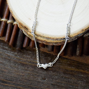 Today I choose to simplify. I am, I have, I do enough. Today I choose contentment We all have the potential to be so many different things, but there is beauty in choosing to be content with who you are right now. So choose to focus on just being you. You have enough. You do enough. You are enough. This gorgeously simple necklace features a small silver heart on a an 18-20" silver curb link chain with connected hearts set all around the chain. Reminding you that even simple things can have beautiful details when you look closer.