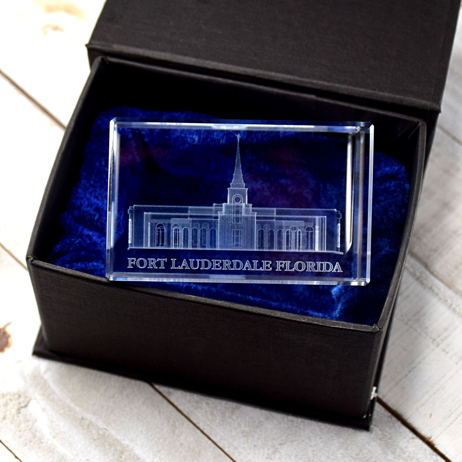 This beautiful laser engraved crystal cube makes for a perfect wedding or anniversary gifts. Together with a lighted rotating base, these 3D pieces of art make for a great decoration on a table or shelf. Each cube is packaged in a beautiful velvet-lined gift box. Over 30 temples are available for members across the United States and Canada. This cube is: 5cm x 5cm x 8cm.