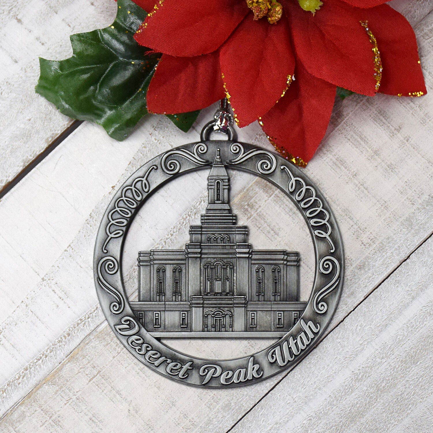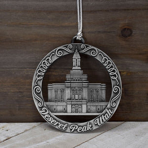 Deseret Peaks Utah Temple Antique Silver Ornament