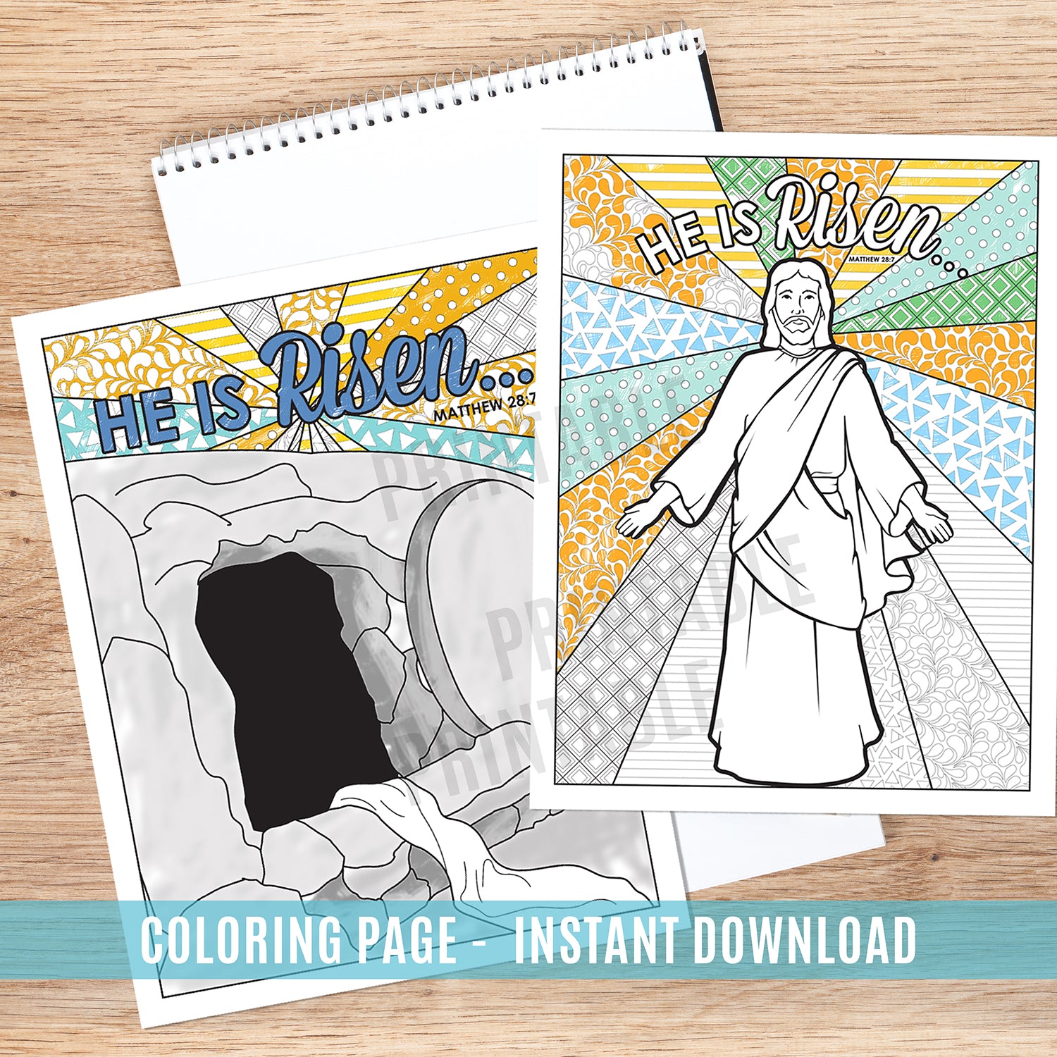 Easter He Is Risen Coloring Page Set - Instant Download