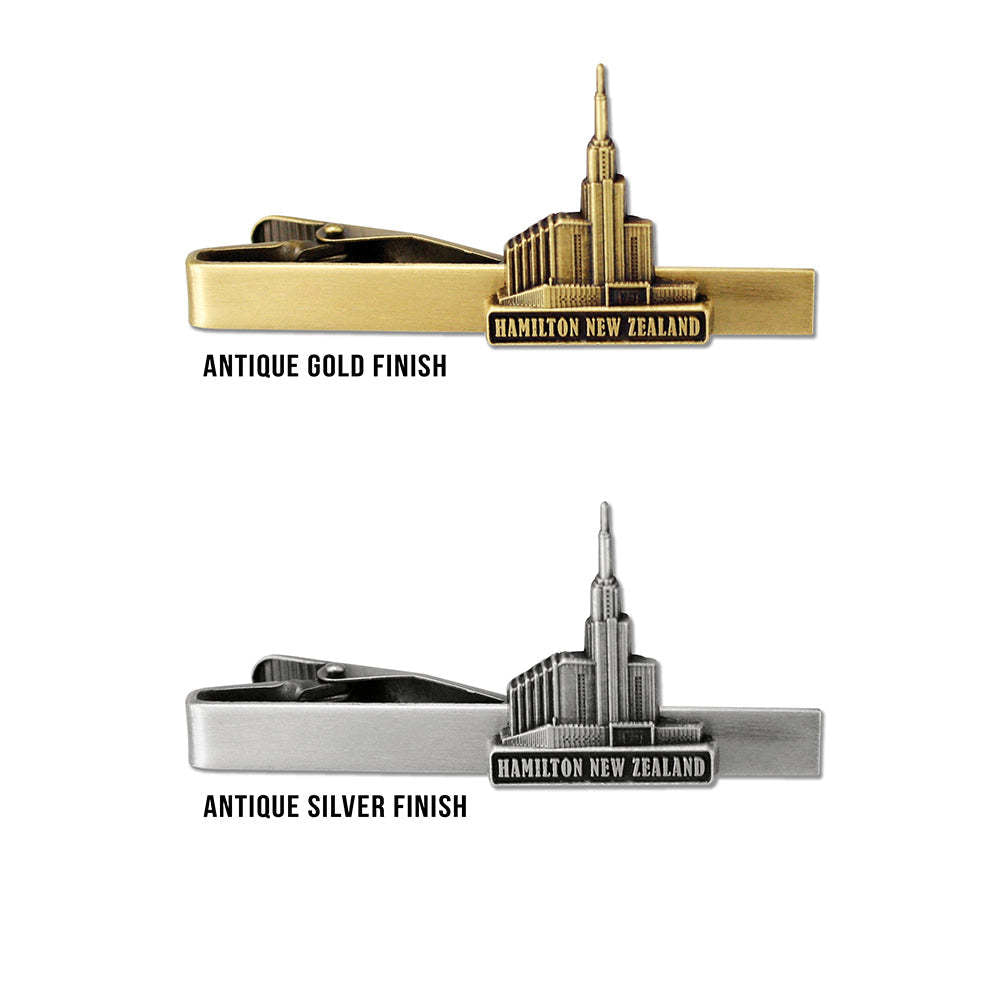 Introducing our exquisitely crafted 2.5" tie clip, a sophisticated accessory designed to elevate your ensemble with a touch of refined charm. This meticulously designed tie clip features a detailed temple charm made from zinc alloy. Crafted with precision and durability in mind, our tie clip ensures a secure grip on your tie, preventing any unwelcome slips or shifts throughout the day.  Available in both antique gold and antique silver finishes, our tie clip offers versatility to suit any occasion or personal preference. Whether you're attending a formal event or a casual gathering, this timeless accessory effortlessly complements any outfit, adding a dash of sophistication to your look. Makes a great gift for weddings, groomsman, missionaries, temple workers, birthdays, Christmas, or just because. Ask about our ward discount for 5 or more items