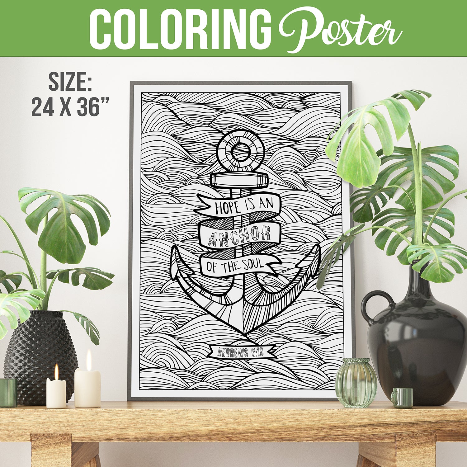 Hope Is An Anchor of The Soul 2 x 3ft - Coloring POSTER - Instant Download