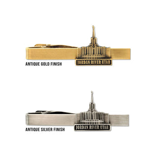 Introducing our exquisitely crafted 2.5" tie clip, a sophisticated accessory designed to elevate your ensemble with a touch of refined charm. This meticulously designed tie clip features a detailed temple charm made from zinc alloy. Crafted with precision and durability in mind, our tie clip ensures a secure grip on your tie, preventing any unwelcome slips or shifts throughout the day.  Available in both antique gold and antique silver finishes, our tie clip offers versatility to suit any occasion or personal preference. Whether you're attending a formal event or a casual gathering, this timeless accessory effortlessly complements any outfit, adding a dash of sophistication to your look. Makes a great gift for weddings, groomsman, missionaries, temple workers, birthdays, Christmas, or just because. Ask about our ward discount for 5 or more items