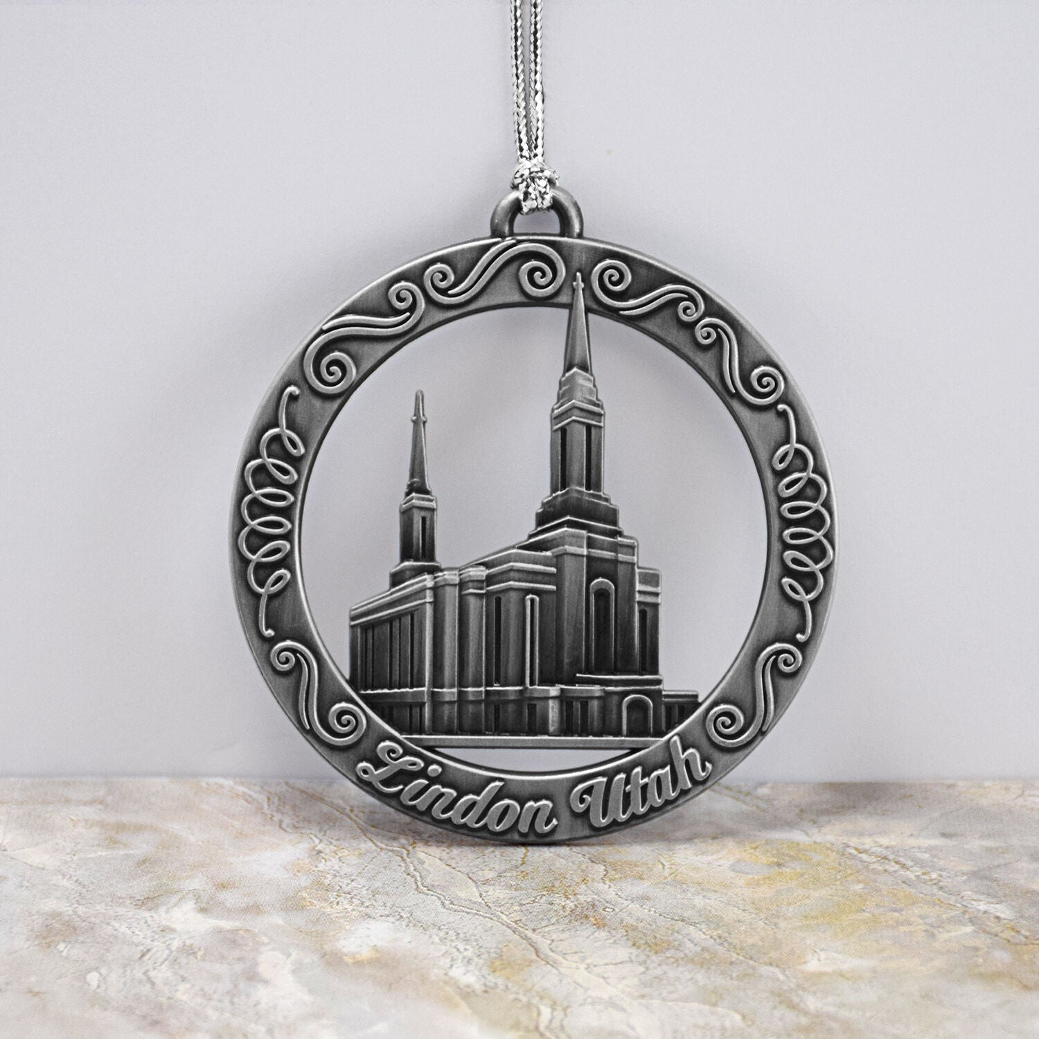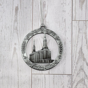 Lindon Utah Temple Antique Silver Ornament