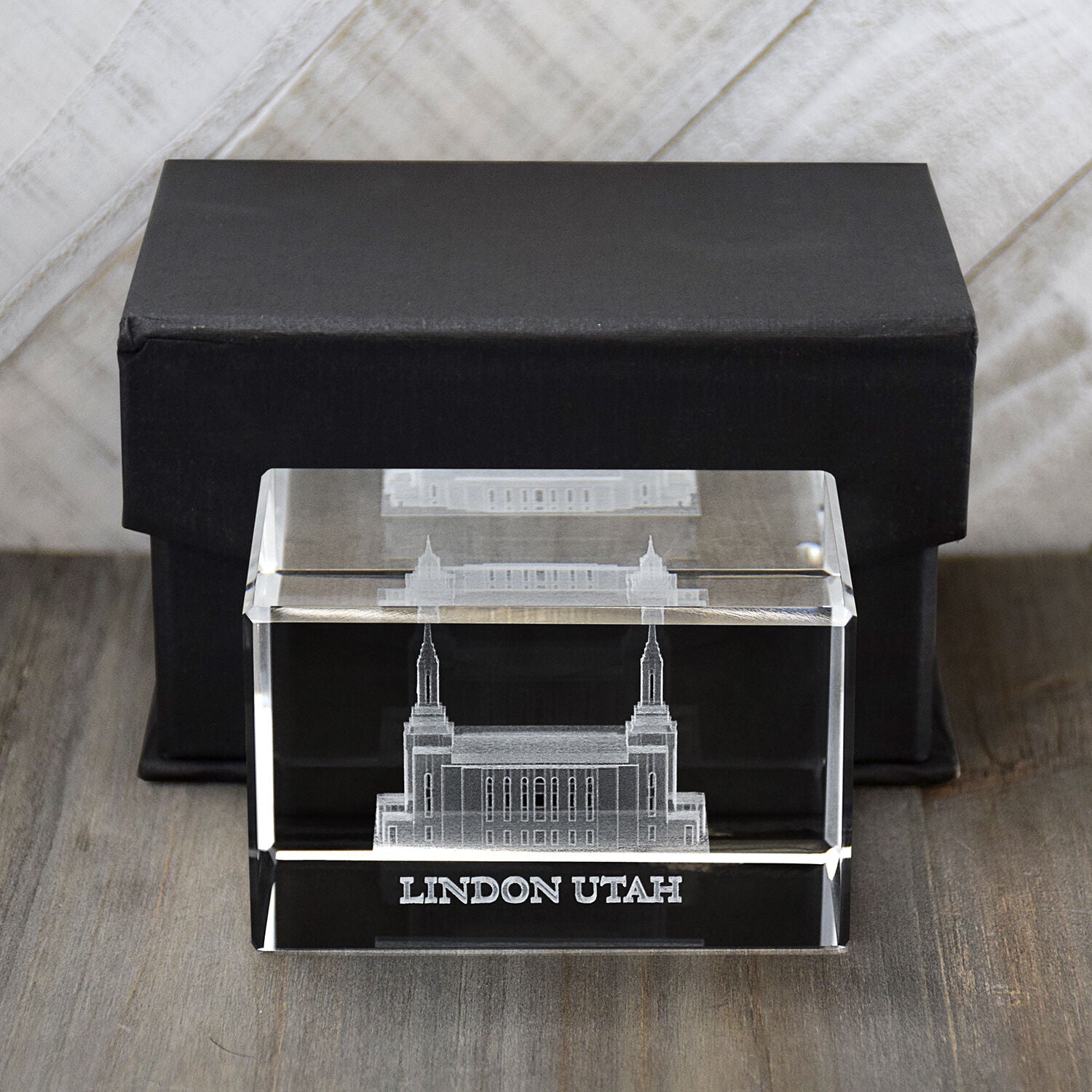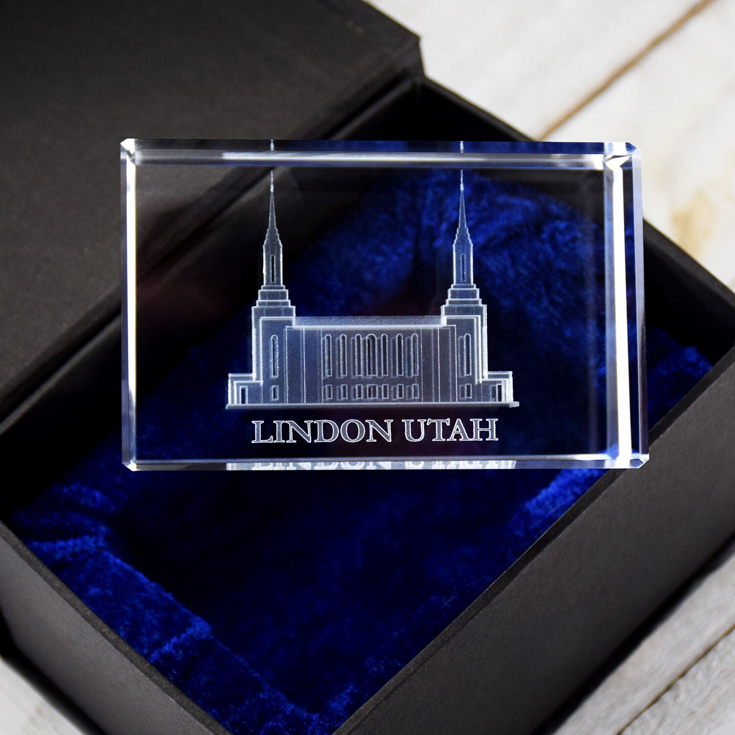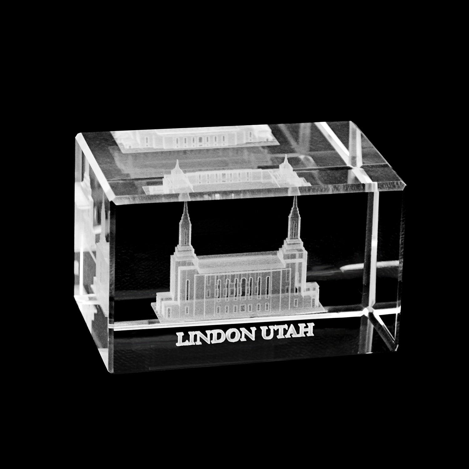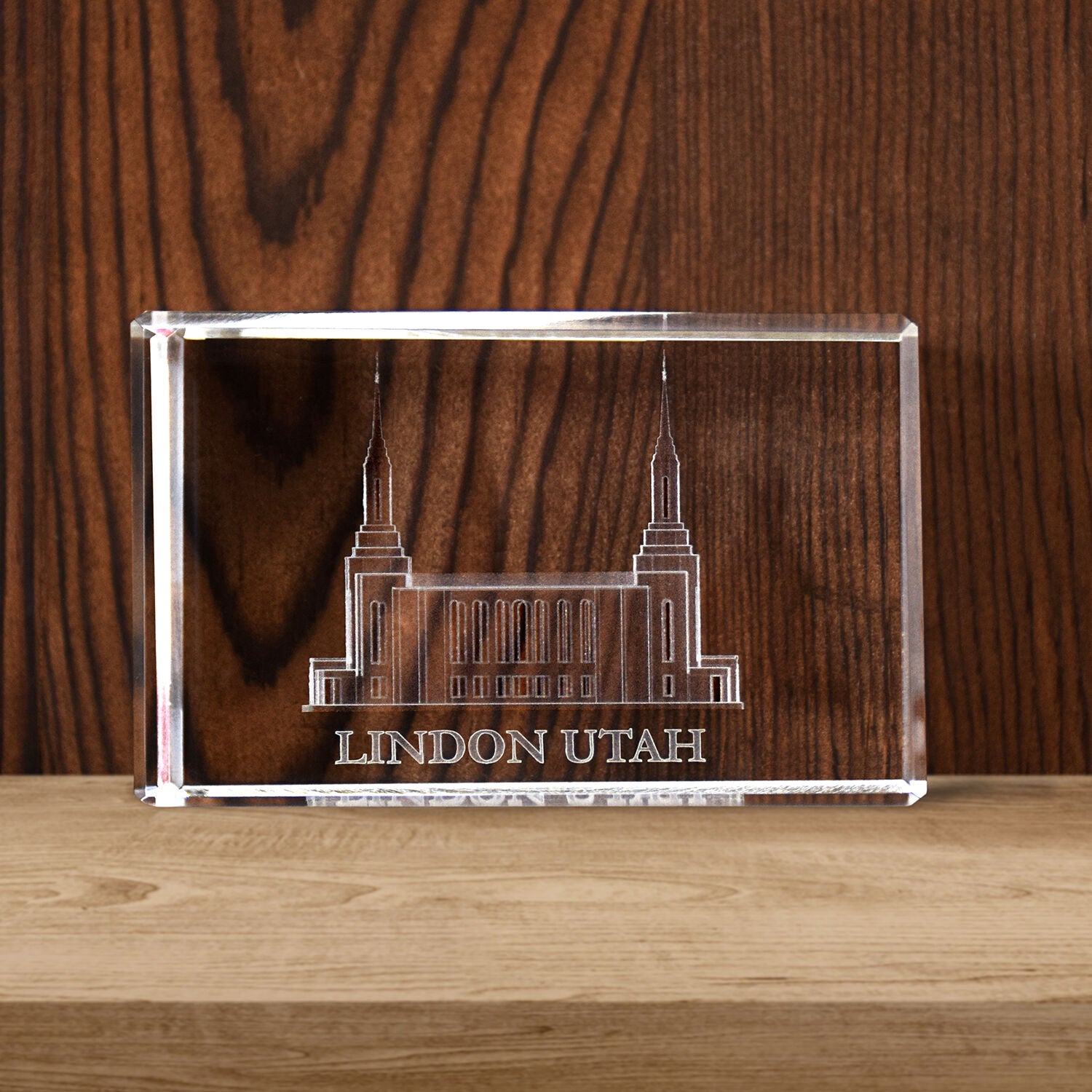 Lindon Utah Temple Laser Engraved Crystal Cube