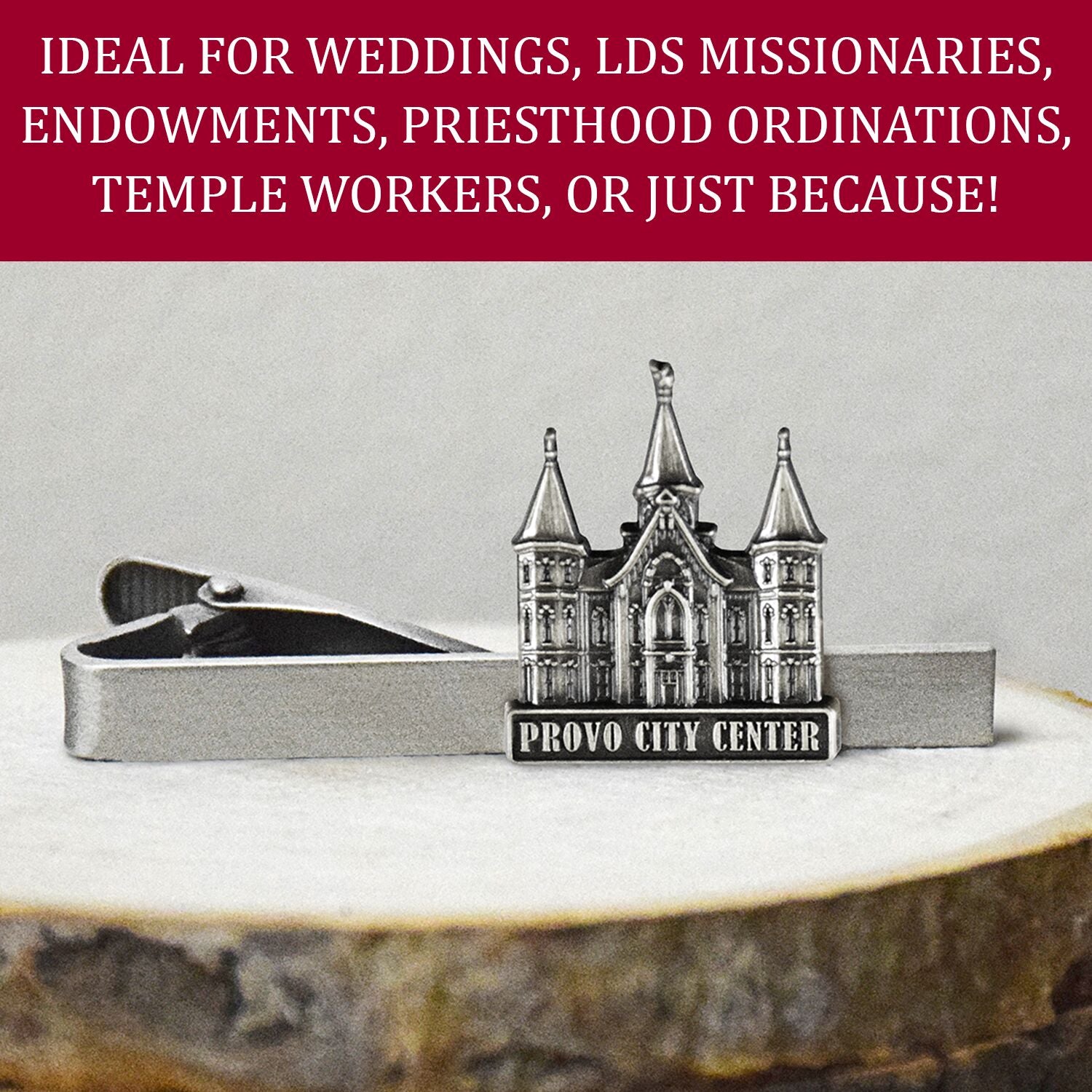 Introducing our exquisitely crafted 2.5" tie clip, a sophisticated accessory designed to elevate your ensemble with a touch of refined charm. This meticulously designed tie clip features a detailed temple charm made from zinc alloy. Crafted with precision and durability in mind, our tie clip ensures a secure grip on your tie, preventing any unwelcome slips or shifts throughout the day.  Available in both antique gold and antique silver finishes, our tie clip offers versatility to suit any occasion or personal preference. Whether you're attending a formal event or a casual gathering, this timeless accessory effortlessly complements any outfit, adding a dash of sophistication to your look. Makes a great gift for weddings, groomsman, missionaries, temple workers, birthdays, Christmas, or just because. Ask about our ward discount for 5 or more items