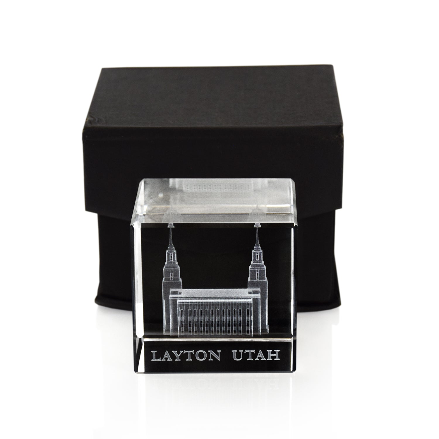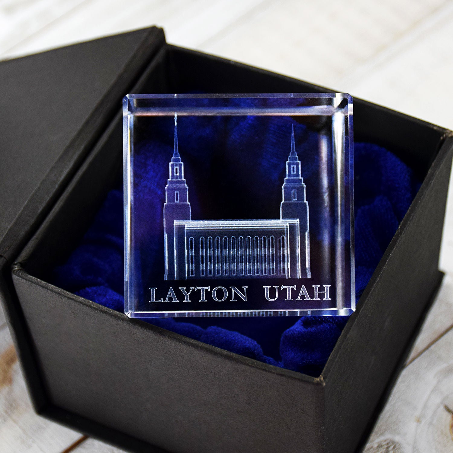 Ringmasters Layton Utah Temple Laser Engraved Crystal Cube