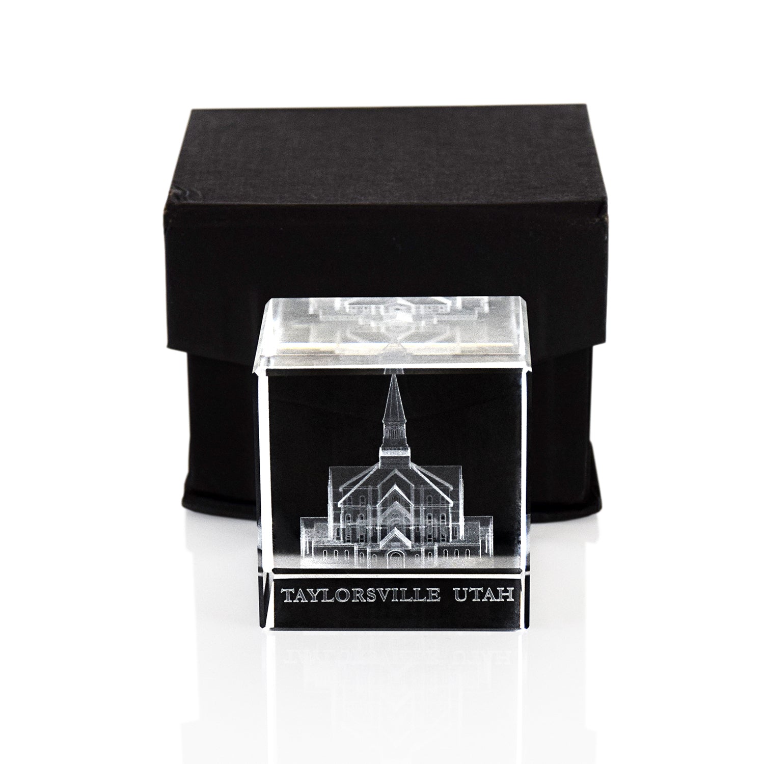 Ringmasters Taylorsville Utah Temple Laser Engraved Crystal Cube