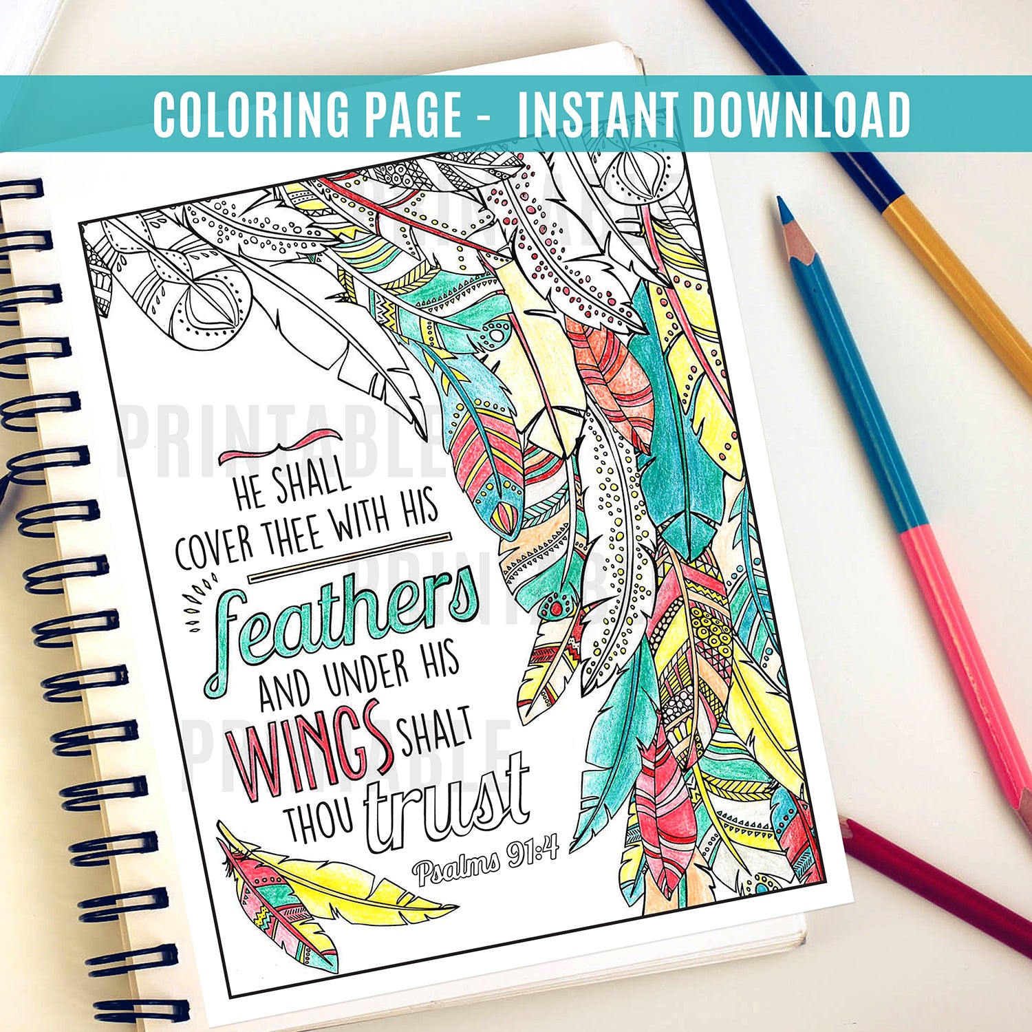 Shalt Thou Trust Feather Coloring Page - Instant Download