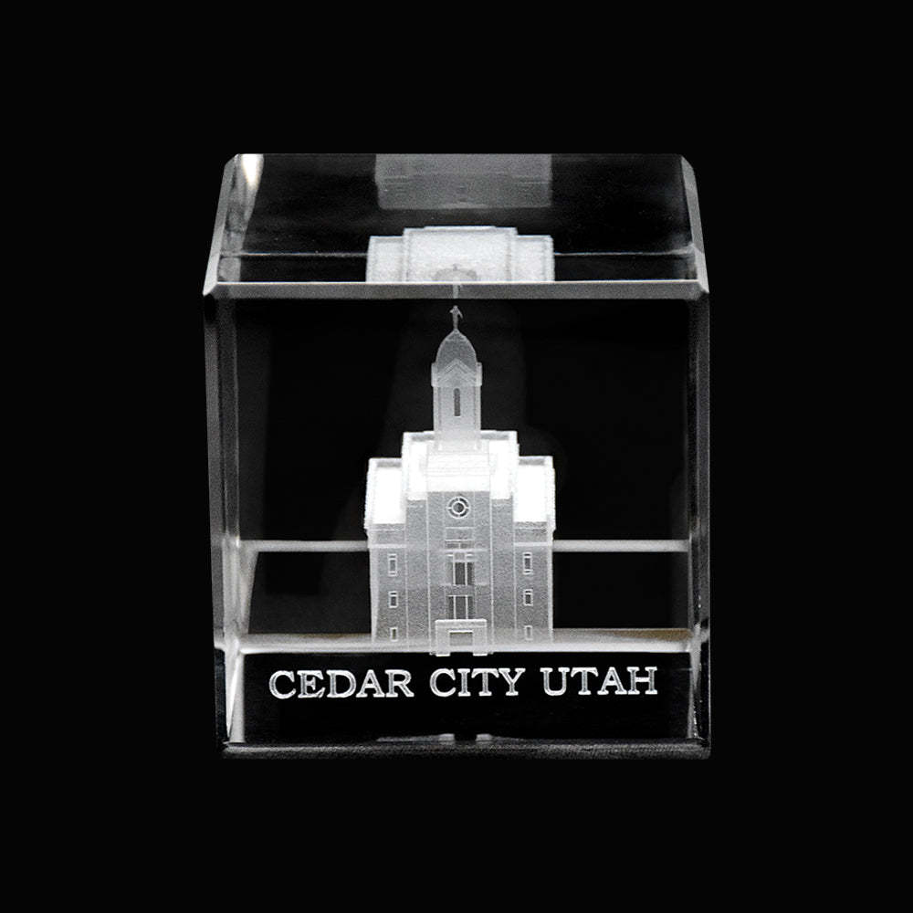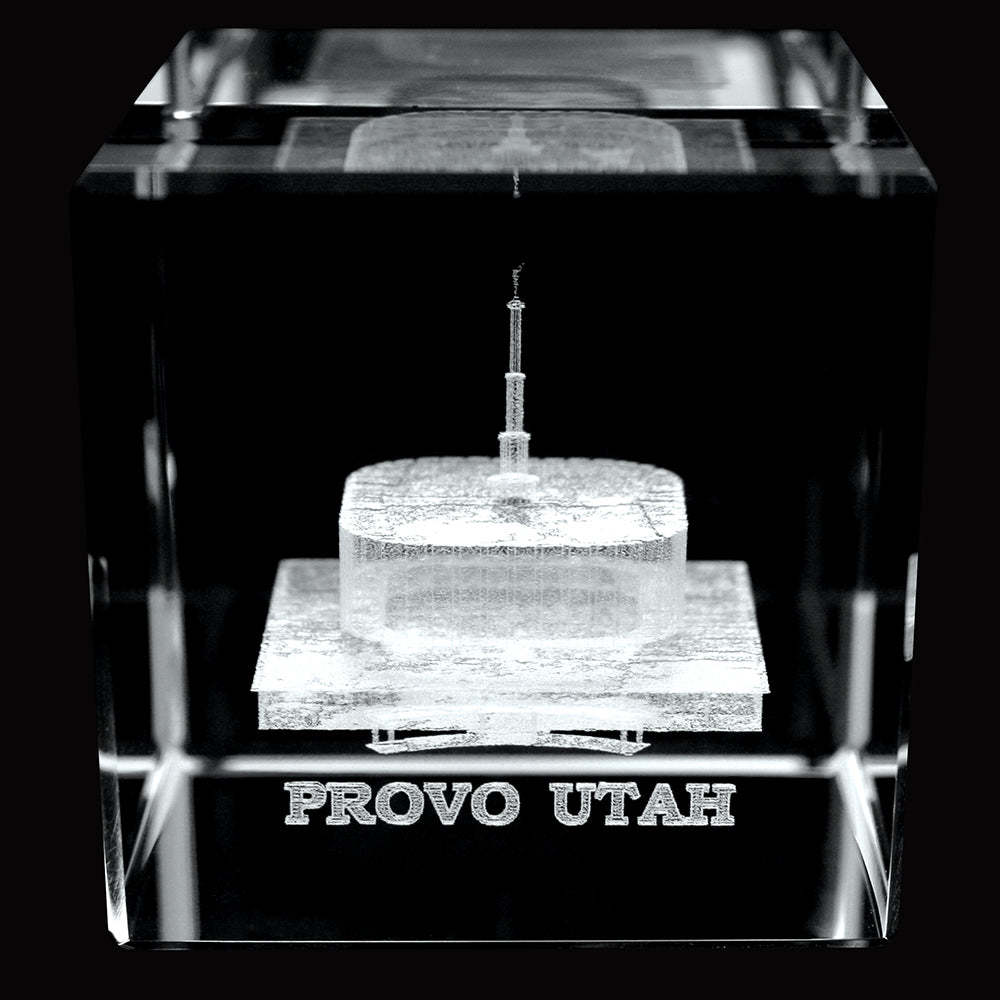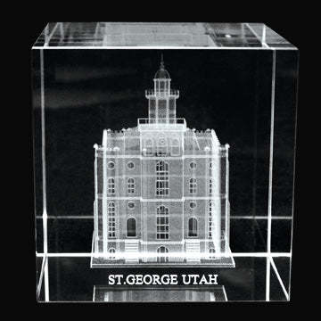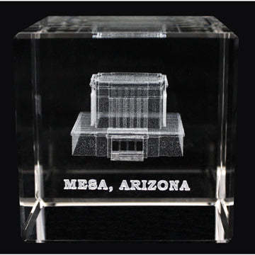 This beautiful laser engraved crystal cube makes for a perfect wedding or anniversary gifts. Together with a lighted rotating base, these 3D pieces of art make for a great decoration on a table or shelf. Each cube is packaged in a beautiful velvet-lined gift box. Over 30 temples are available for members across the United States and Canada. This cube is: 5cm x 5cm x 8cm.
