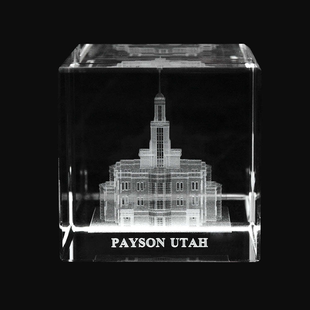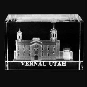 This beautiful laser engraved crystal cube makes for a perfect wedding or anniversary gifts. Together with a lighted rotating base, these 3D pieces of art make for a great decoration on a table or shelf. Each cube is packaged in a beautiful velvet-lined gift box. Over 30 temples are available for members across the United States and Canada. This cube is: 5cm x 5cm x 8cm.