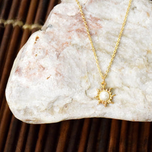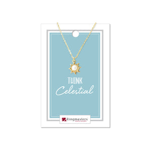"Mortality is a master class in learning to choose the things of greatest eternal important...so, THINK CELESTIAL" ~Russel M. NelsonThis sun charm is approximately 1/2" and comes with a half imitation pearl centered in the charm. The look is completed on a 16-18" adjustable chain.