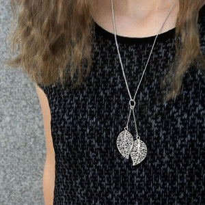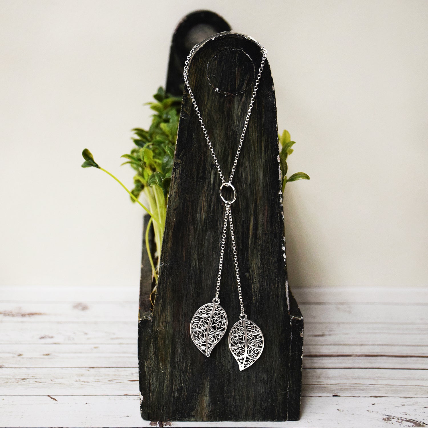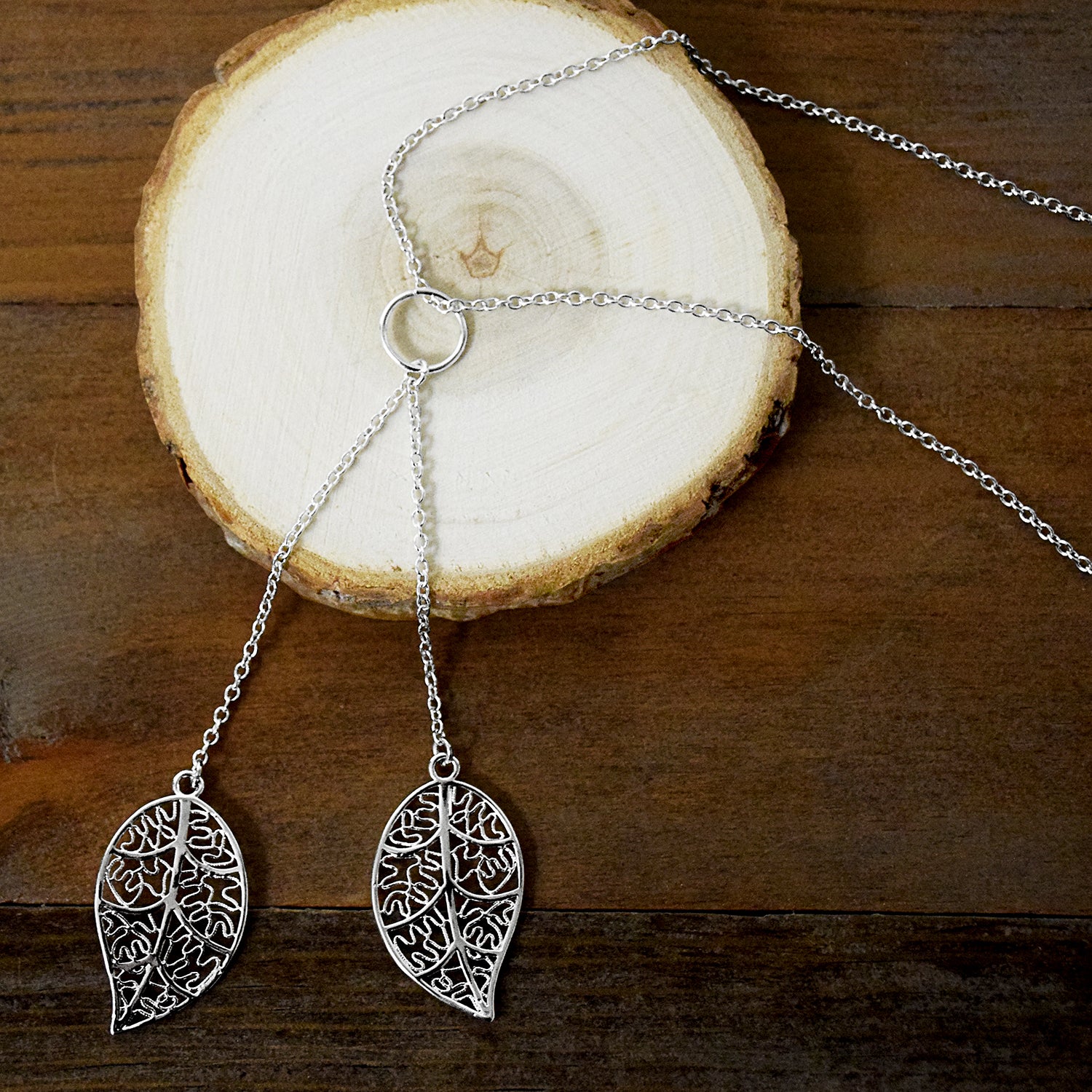 This is a silver finish necklace with a 20" adjustable chain. Comes with two intricate pattern leaves.Necklace Theme - CONTENTMENTToday I choose to simplify. I am, I have, I do enough. today I will choose CONTENTMENT.