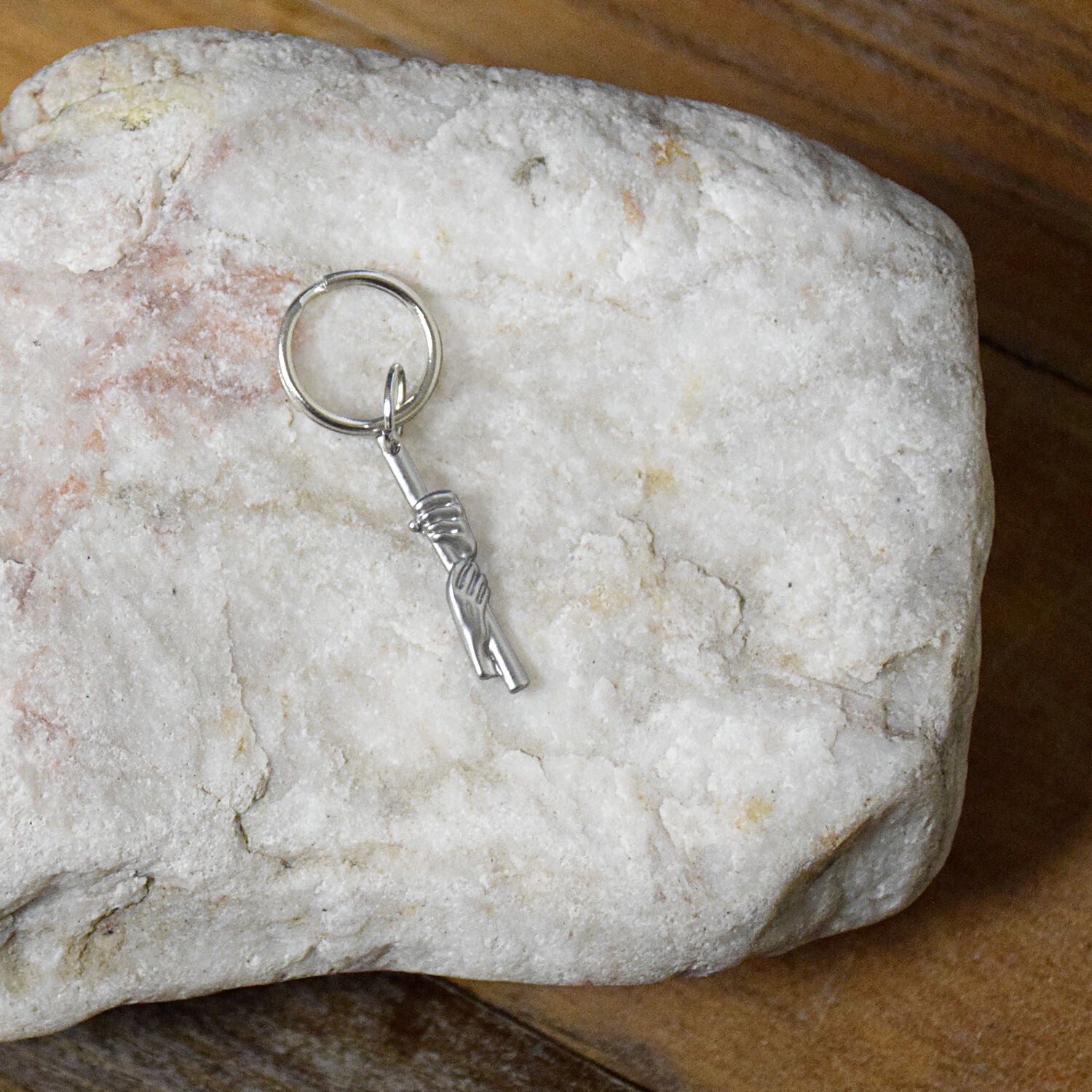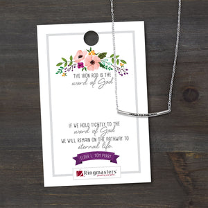 A meaningful reminder you can carry with you every day. This small but powerful accessory features a 1" metal rod charm with 3-dimensional hands holding to it—a beautiful symbol of faith, strength, and perseverance.